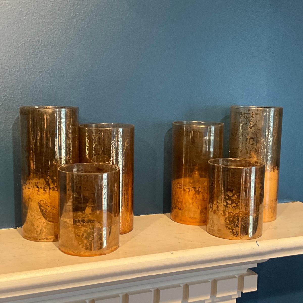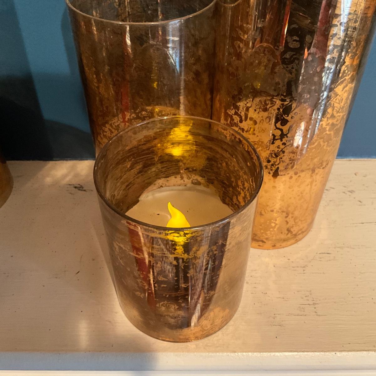 010 Two Sets of Three Gold Finish Battery Operated Candles
