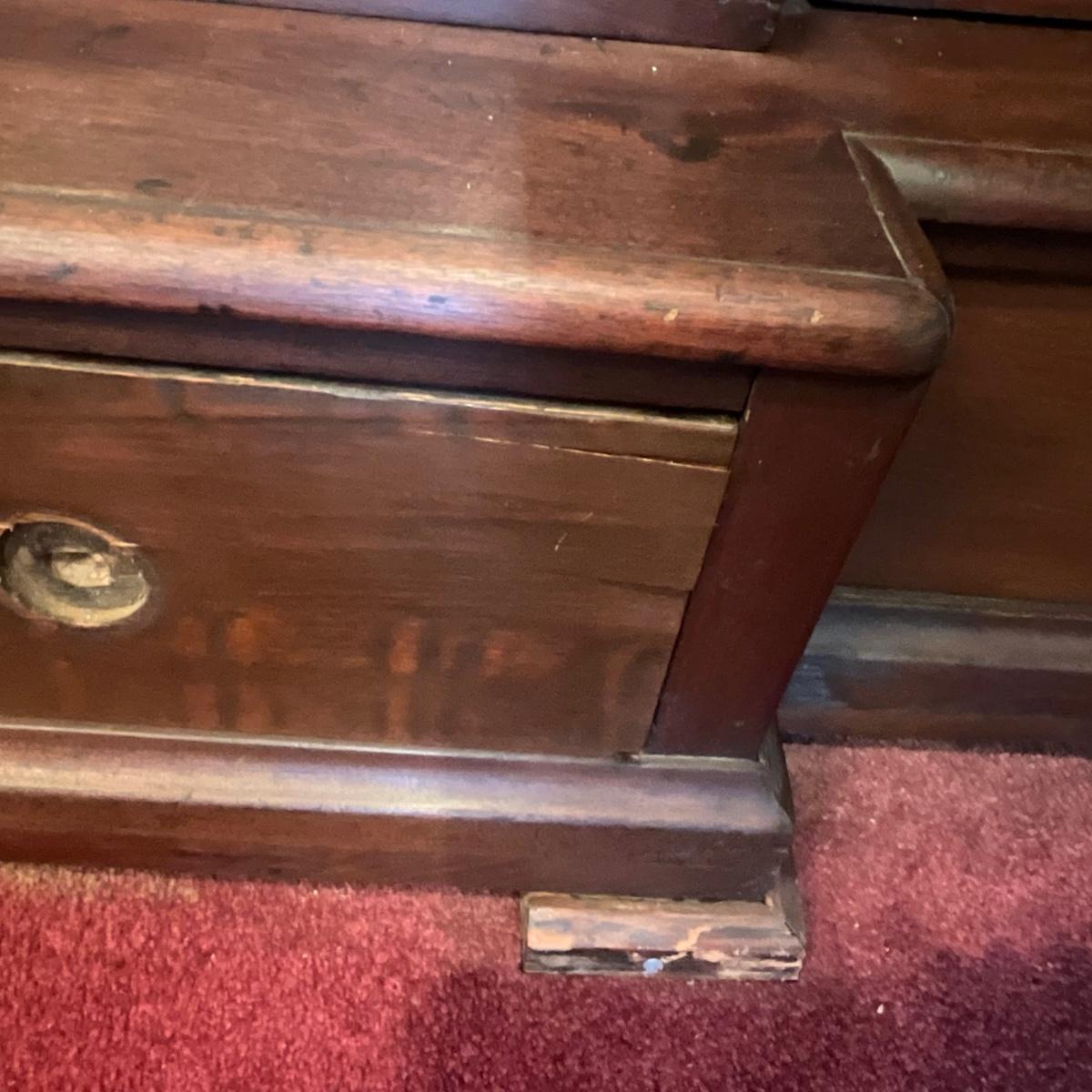 Base measures 80.5" wide at it's widest x 14" high x 18" deep (knobs are not in picture for center drawer, they are inside the unit)