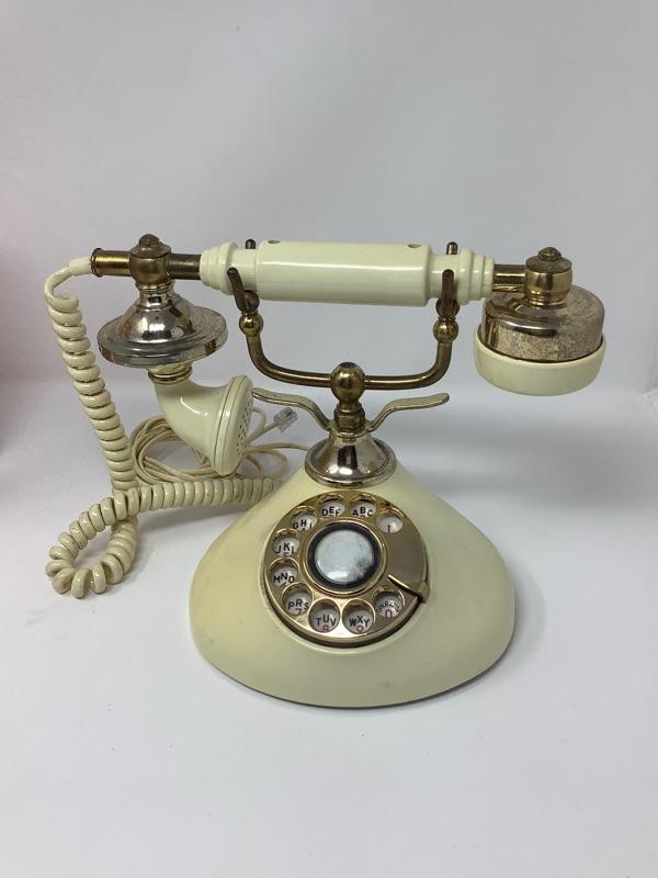 012:  Antique Phone With Yellow and Blue Porcelain Tray