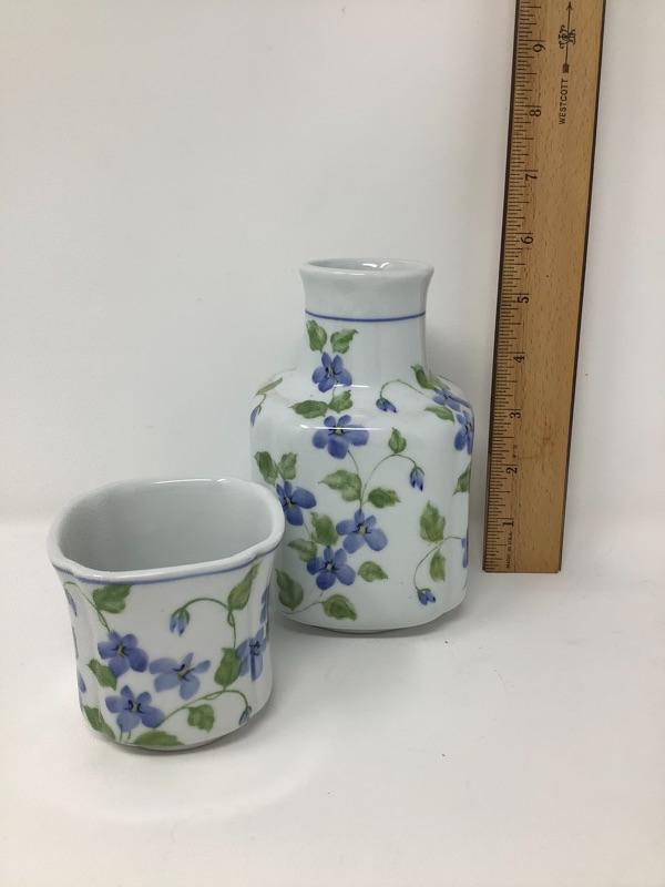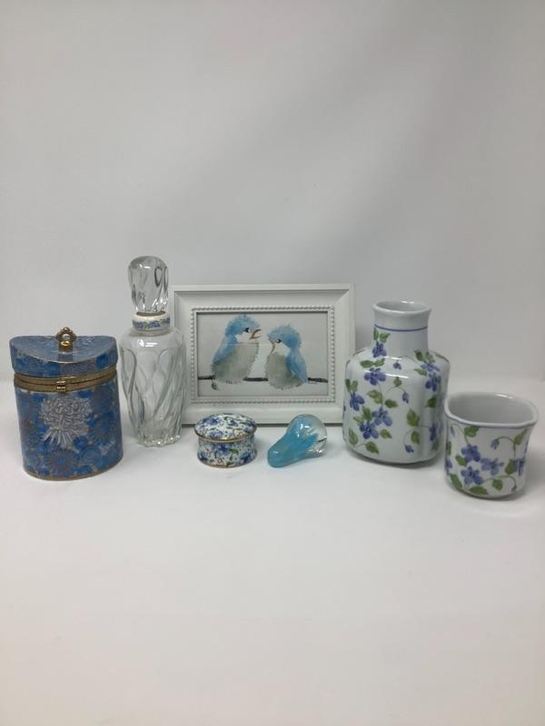 Andrea by Sadek Water Decanter and Glass, with an assortment of beautiful items, some vintage, that complement each other.