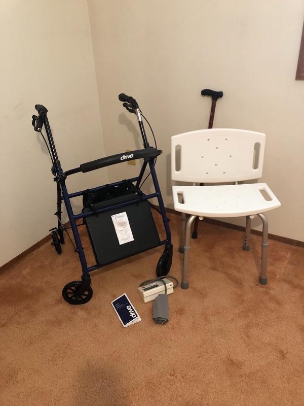 Brand new never used Drive Walker $200.00 value, Shower chair, blood pressure cuff, can and toilet seat assist.