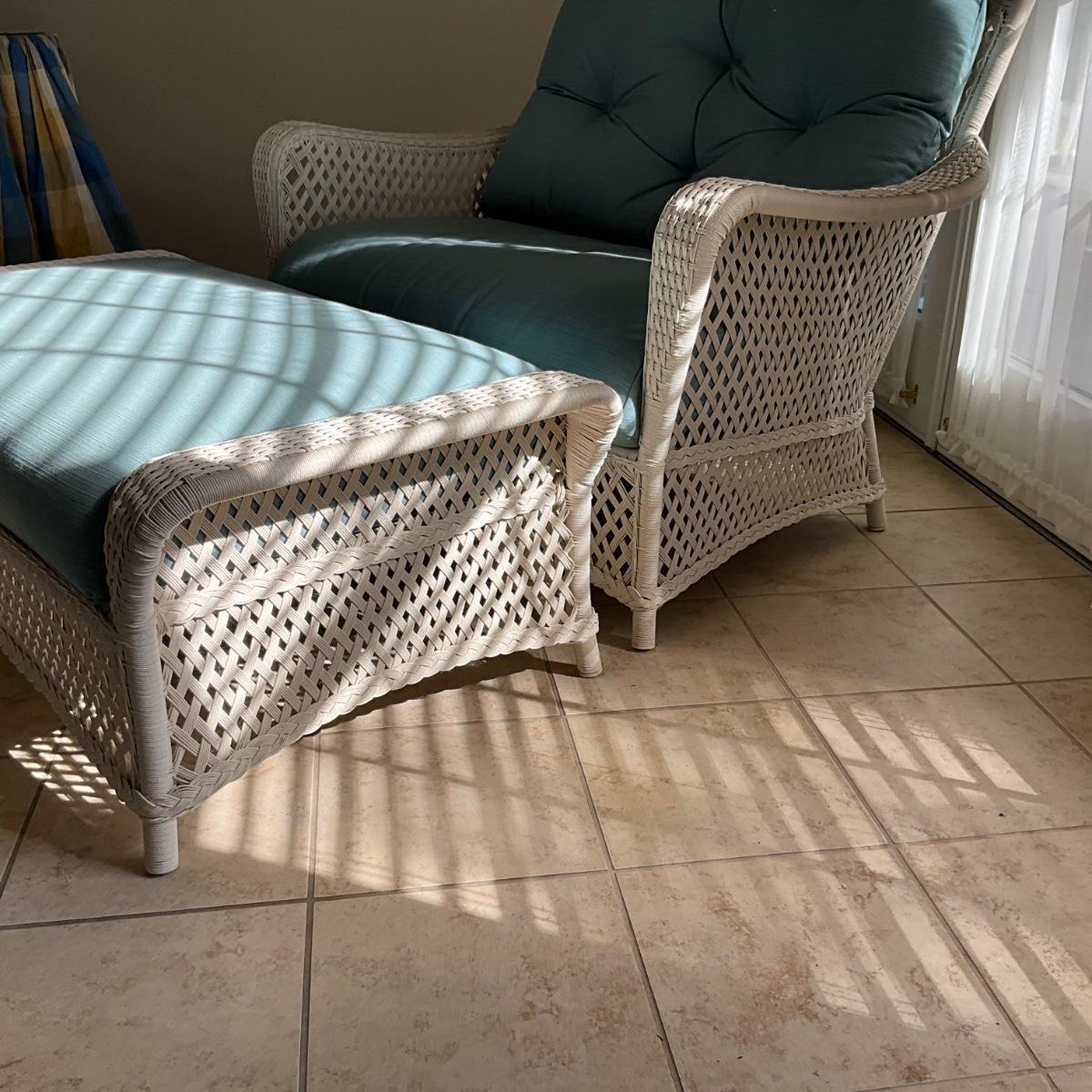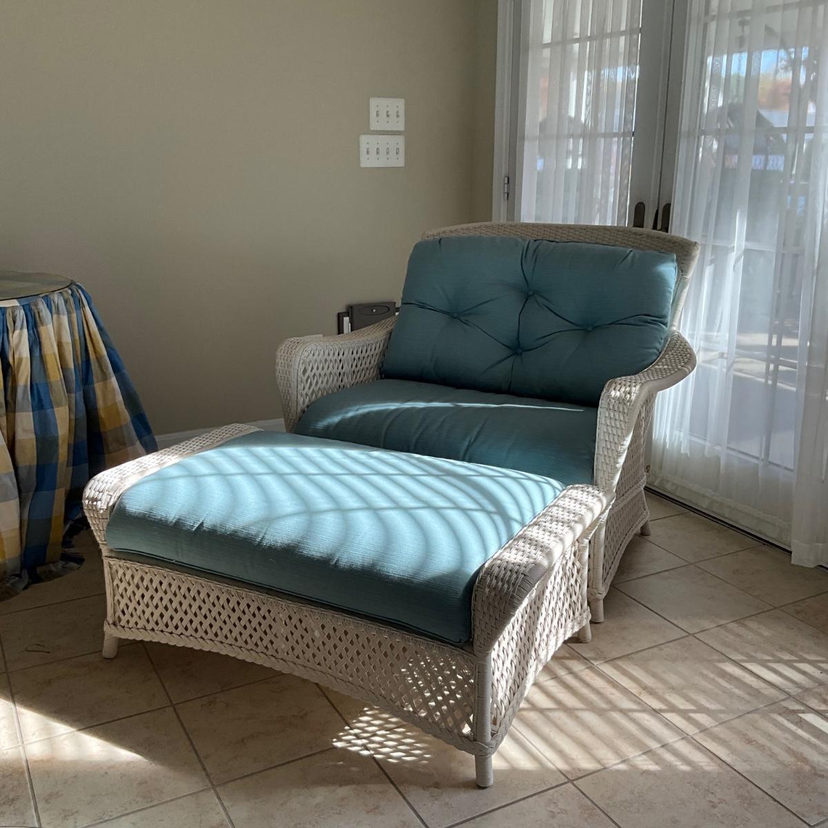 015 Like New Lloyd Flanders White Wicker Chair & Ottoman