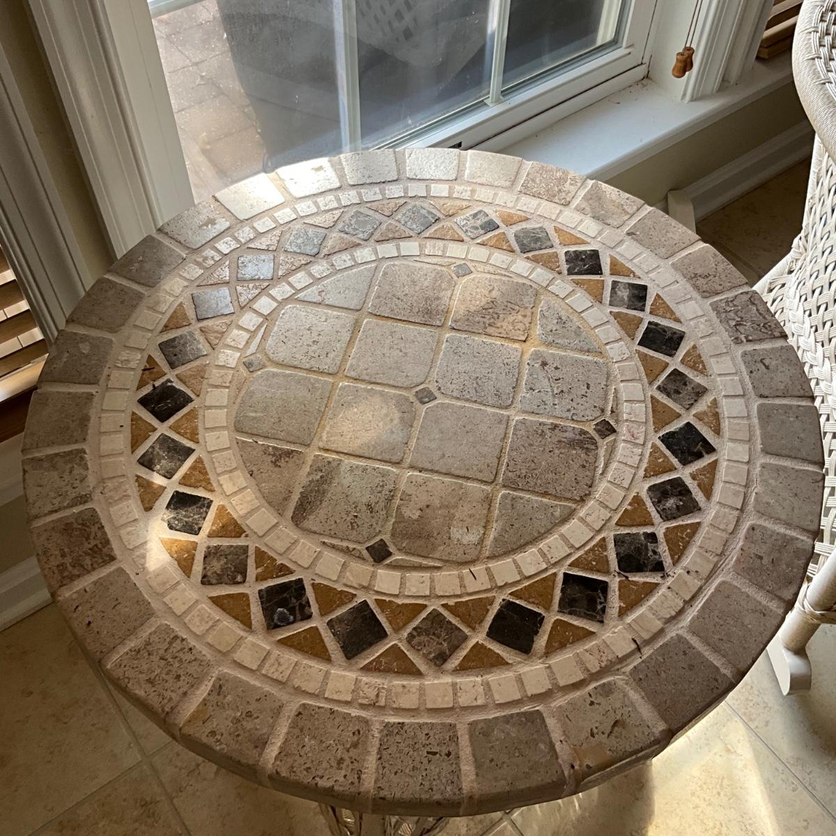 Travertine Top Table measures 22" high x 24" diameter