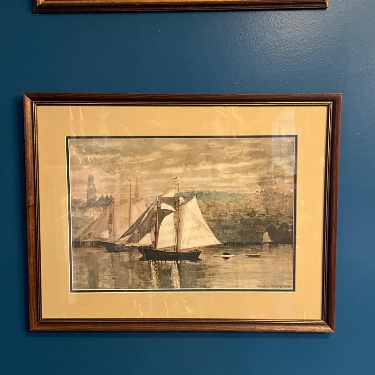 016 Two Framed Ship Prints Winslow Homer Gloucester Schooner