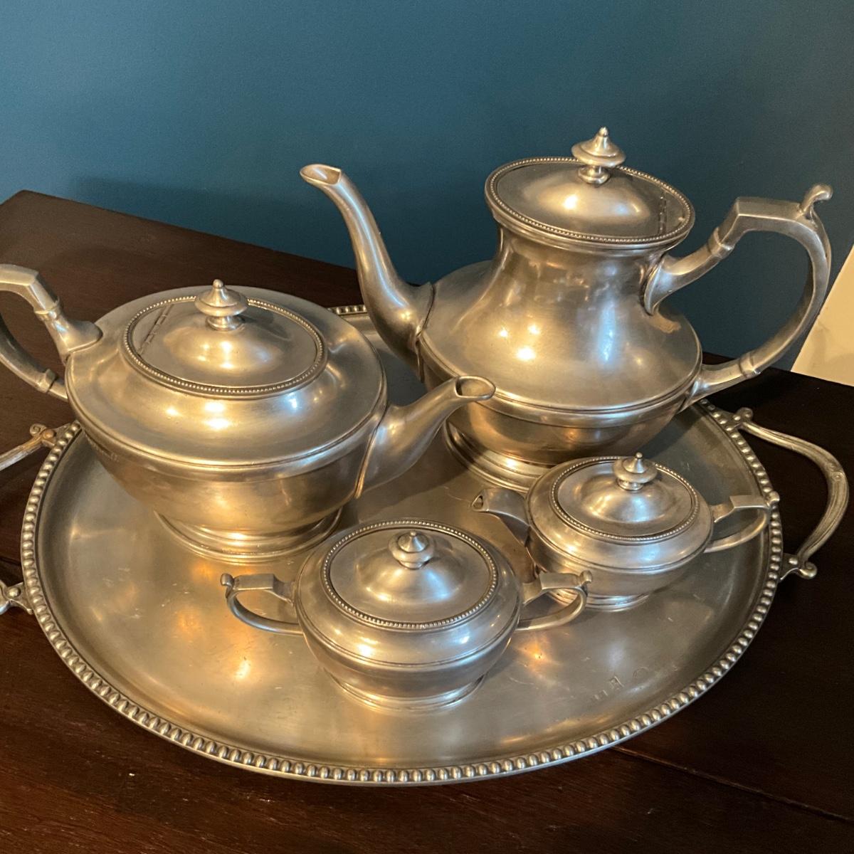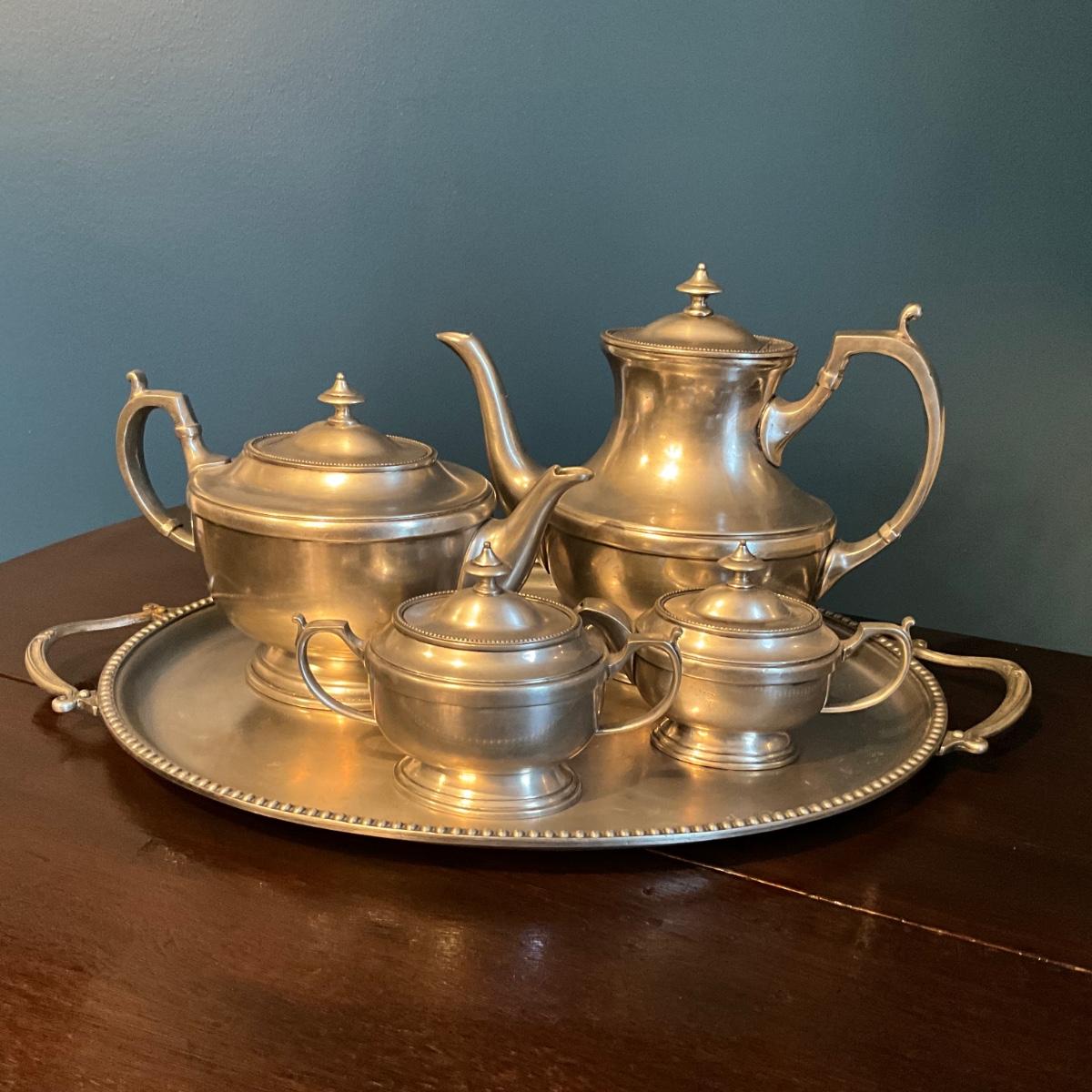 017 Vintage Valpeltro Artale Italian Peltro Pewter 5pc Coffee and Tea Set