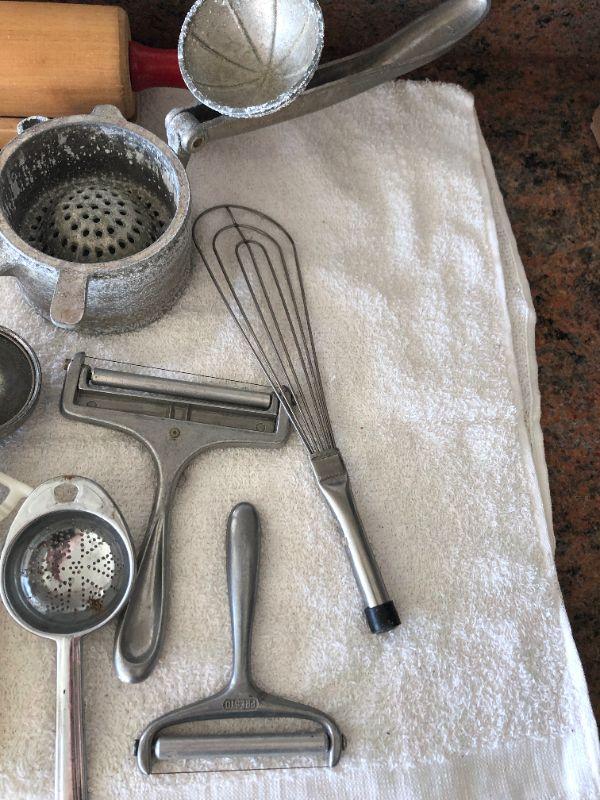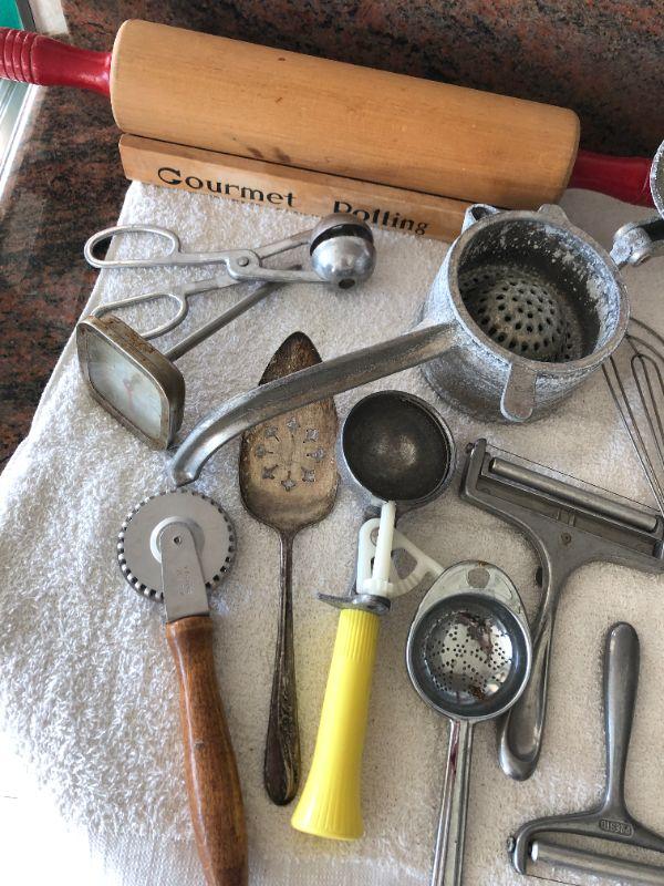 Lot of vintage kitchen tools.