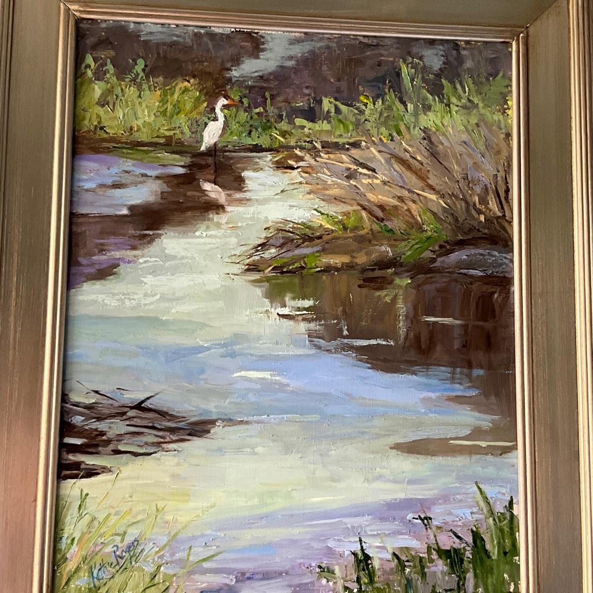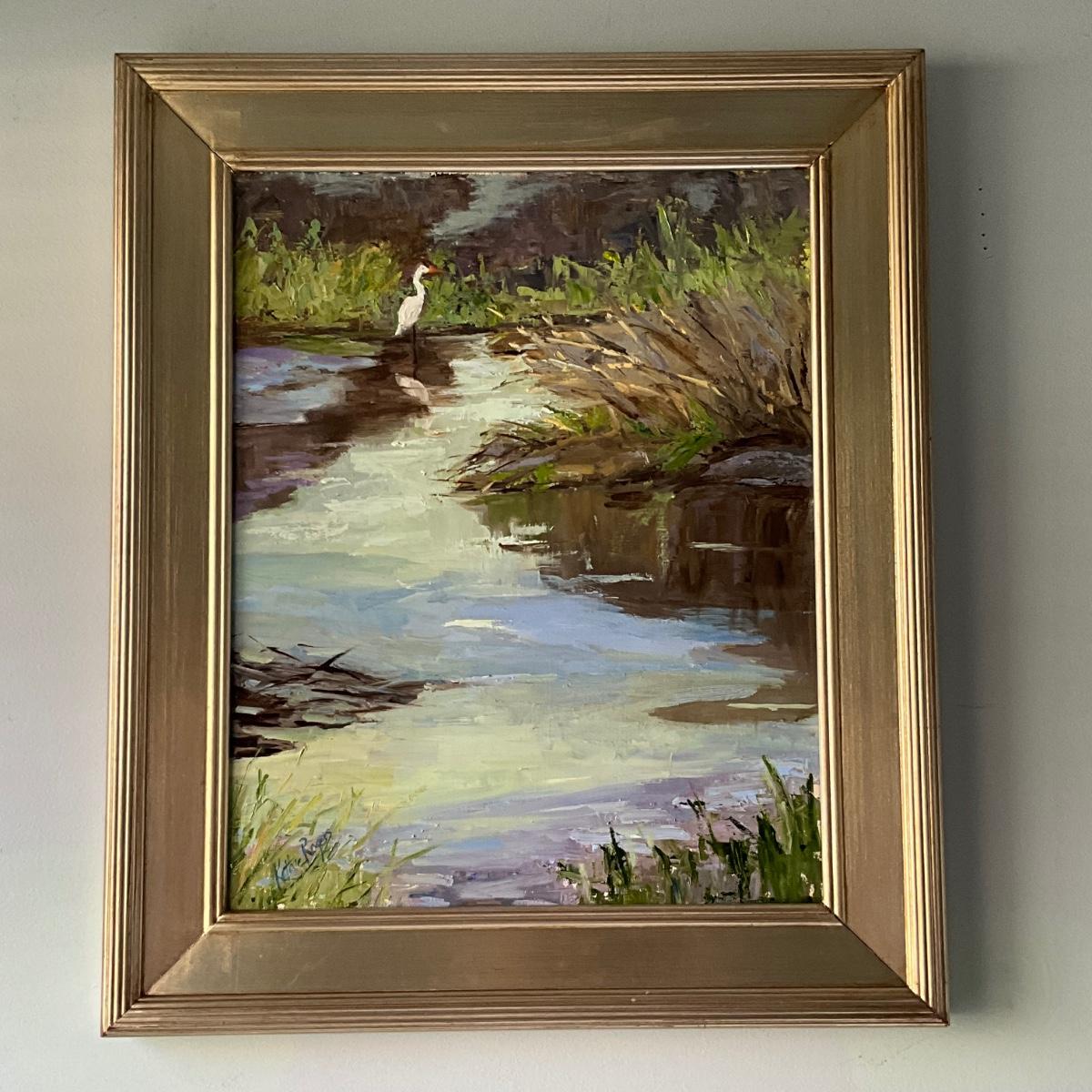 023 Original Oil Painting on Board of Egret Marsh Landscape by Kathie Rogers