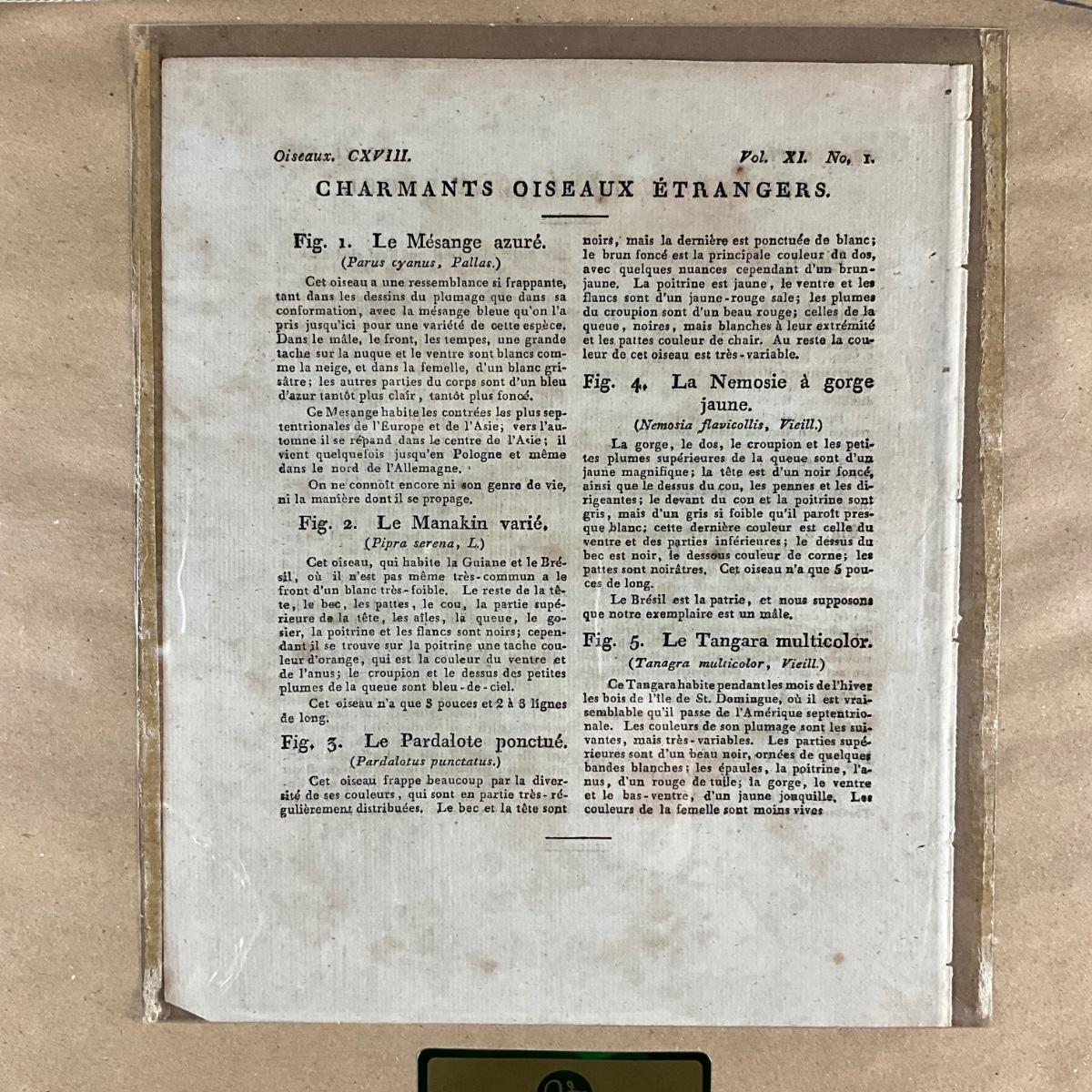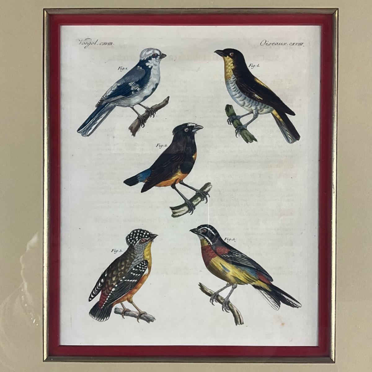 On the back of both frames includes matching page for each bird fig. 1-5. Voegel Plate CXVIII and CXIII