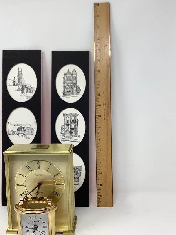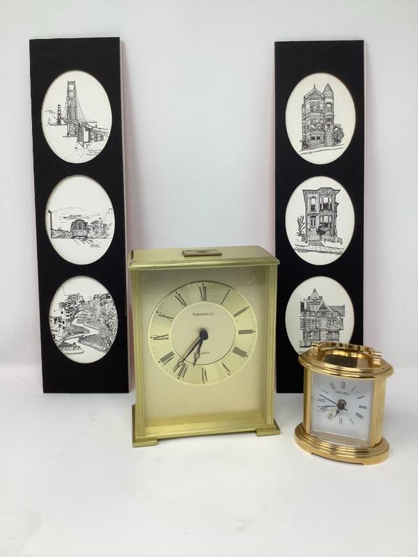 027: Port Smith Quartz Clock, Seiko Clock and Etchings