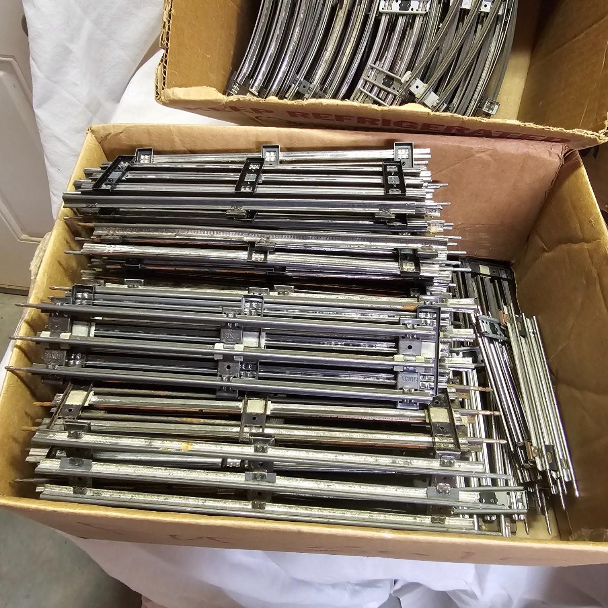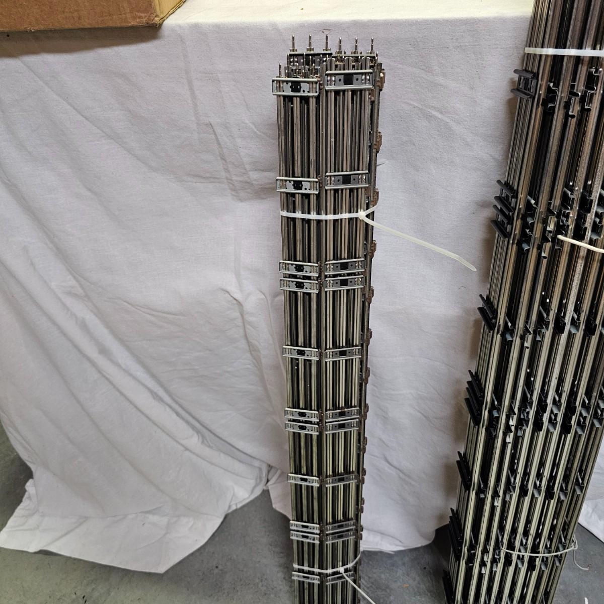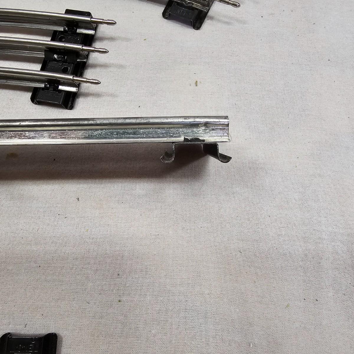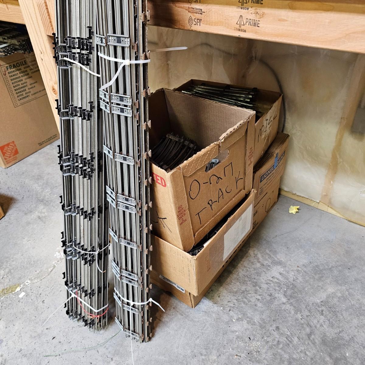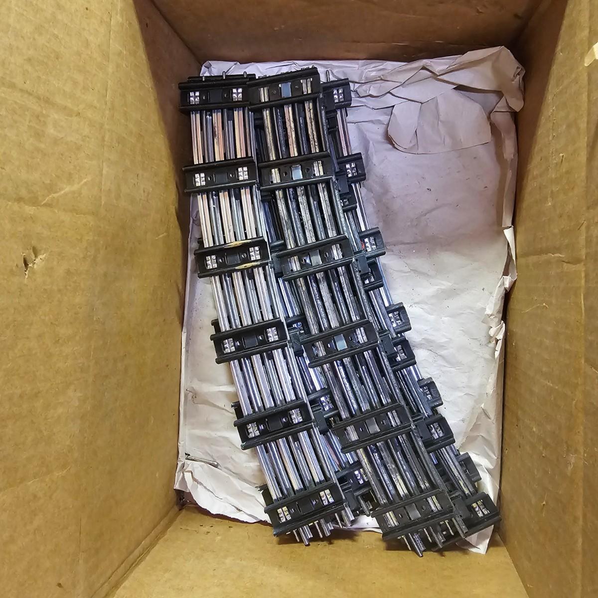Multiple pieces of O and 027 gauge sectional track, as well as some 32" and 40" straight pieces. There are small straight and curved sections for both sizes, hard to guess quantity. There are also some larger 15" curves by K-Line and some small fill in pieces as well. Guesstimate over 200 pieces of sectional track, and twelve 40" straight and fifteen 32" straight. All track is used, some more than others. Most have pins in. See photos for details. Local pickup only. Please note that any price tag seen on an item was not put there by Sterling Transitions and does not reflect the current value of the item.
