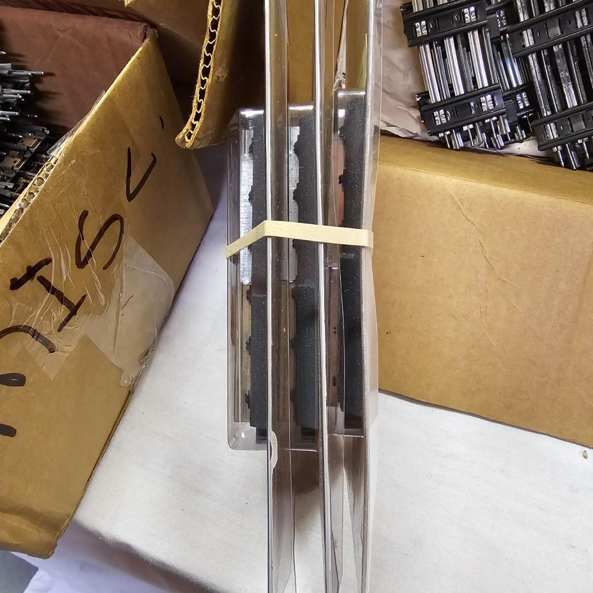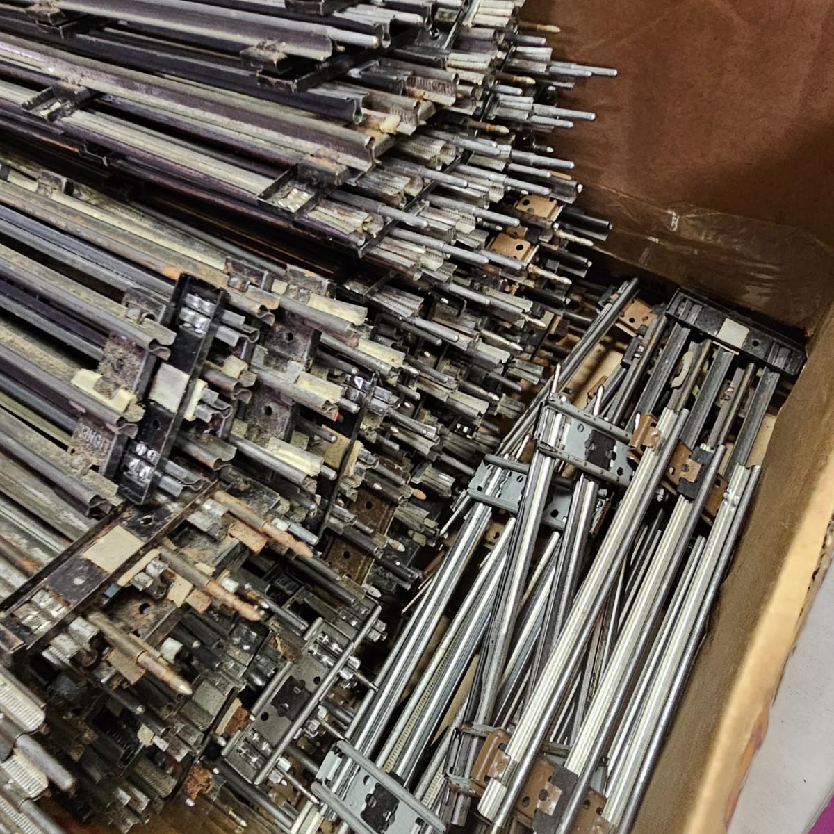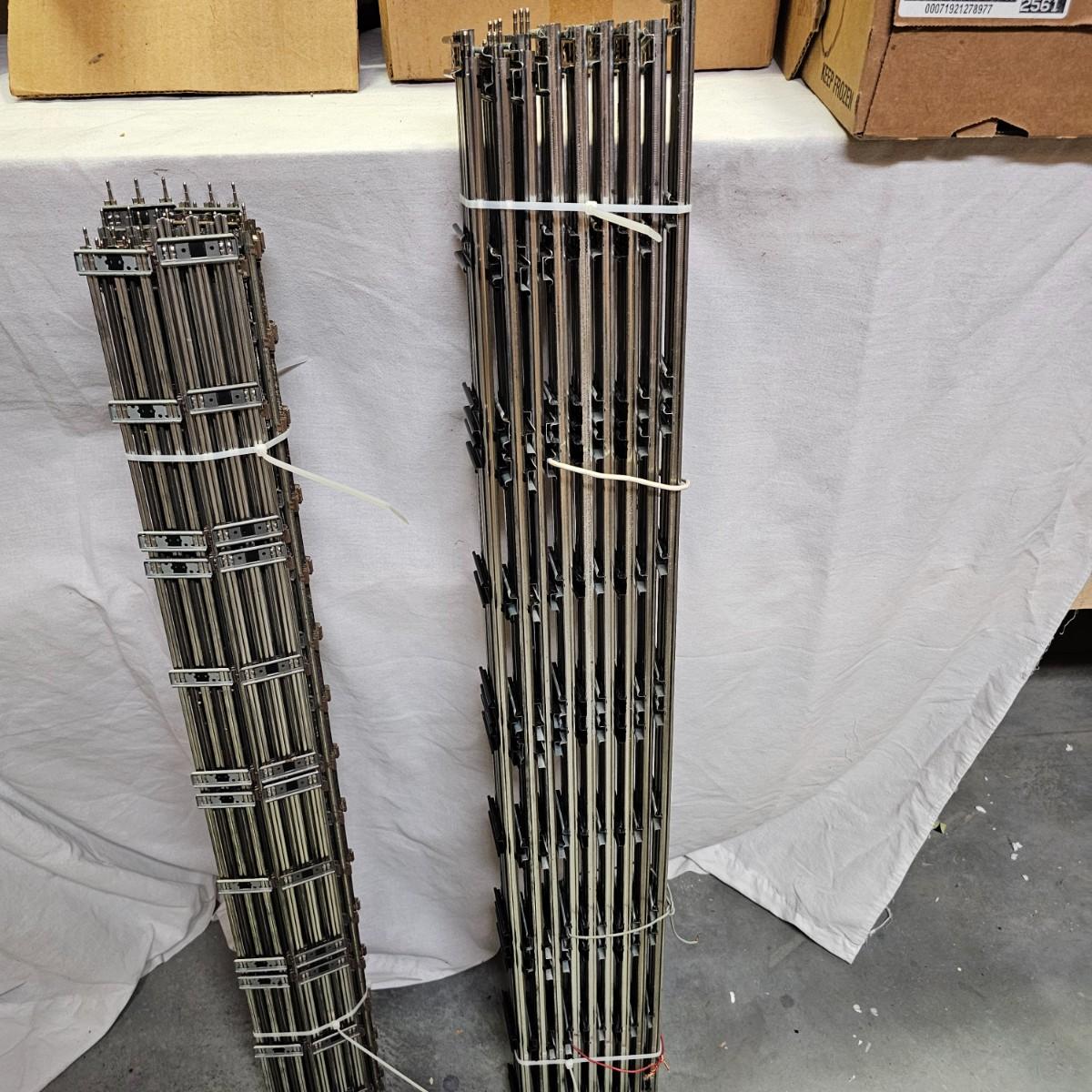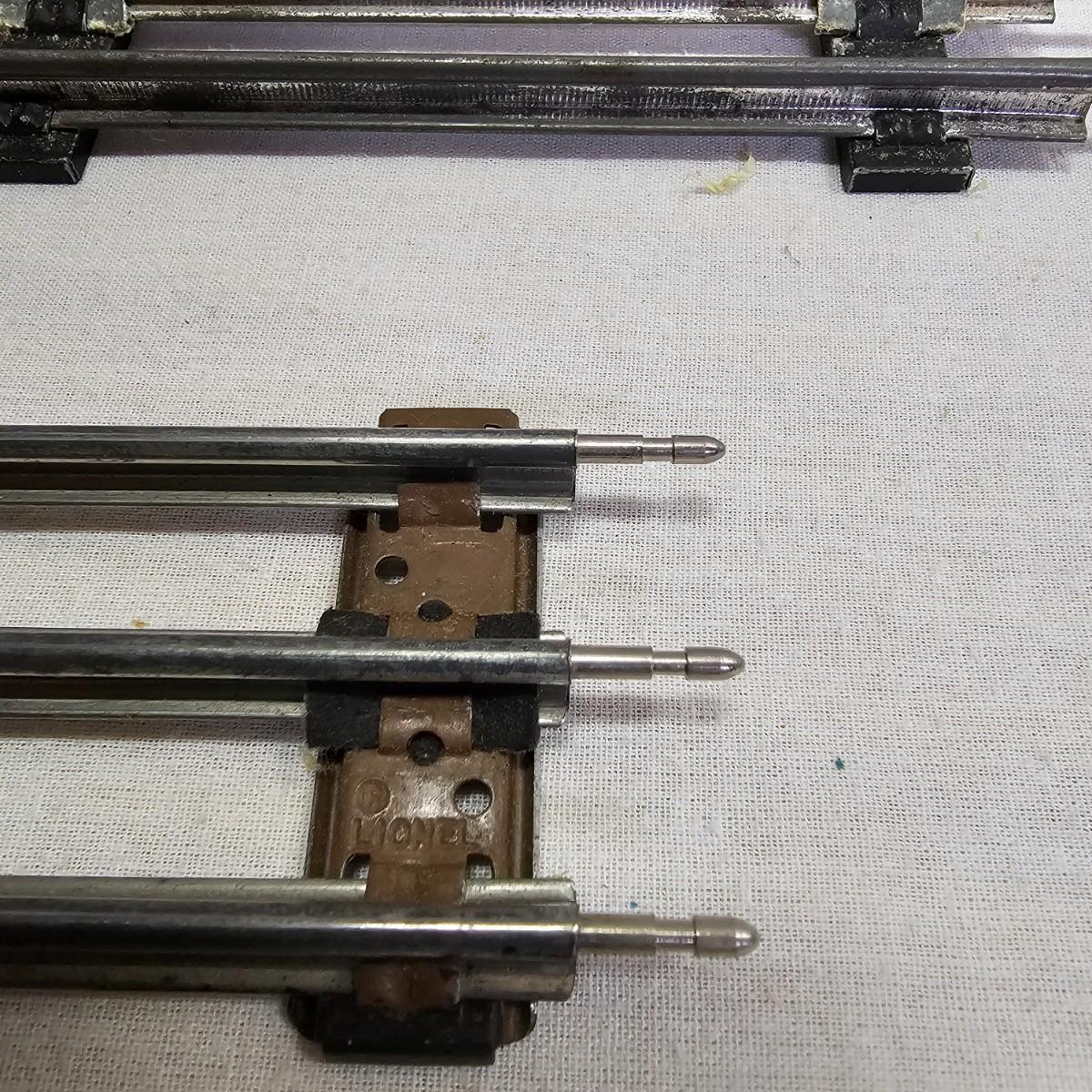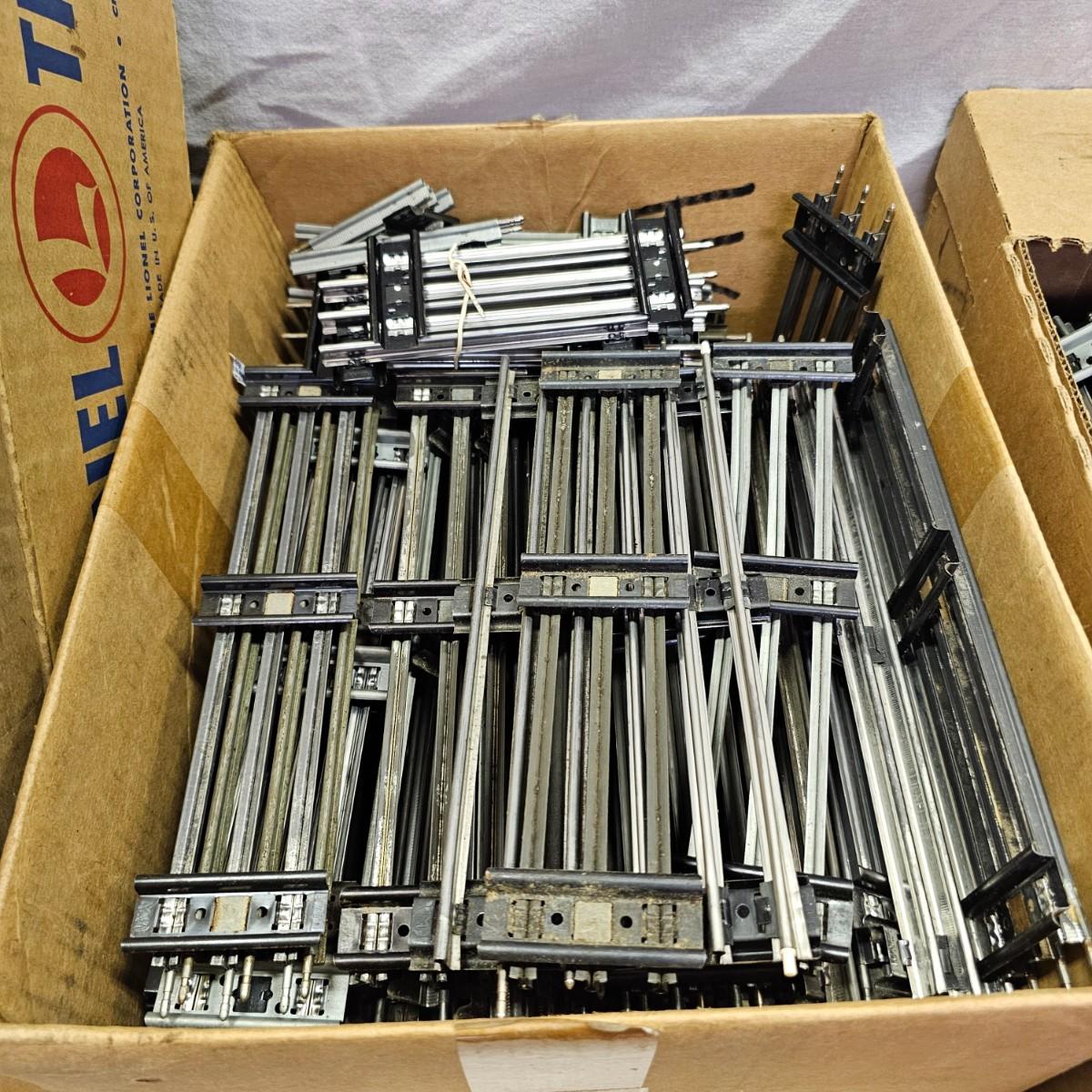 Multiple pieces of O and 027 gauge sectional track, as well as some 32" and 40" straight pieces. There are small straight and curved sections for both sizes, hard to guess quantity. There are also some larger 15" curves by K-Line and some small fill in pieces as well. Guesstimate over 200 pieces of sectional track, and twelve 40" straight and fifteen 32" straight. All track is used, some more than others. Most have pins in. See photos for details. Local pickup only. Please note that any price tag seen on an item was not put there by Sterling Transitions and does not reflect the current value of the item.