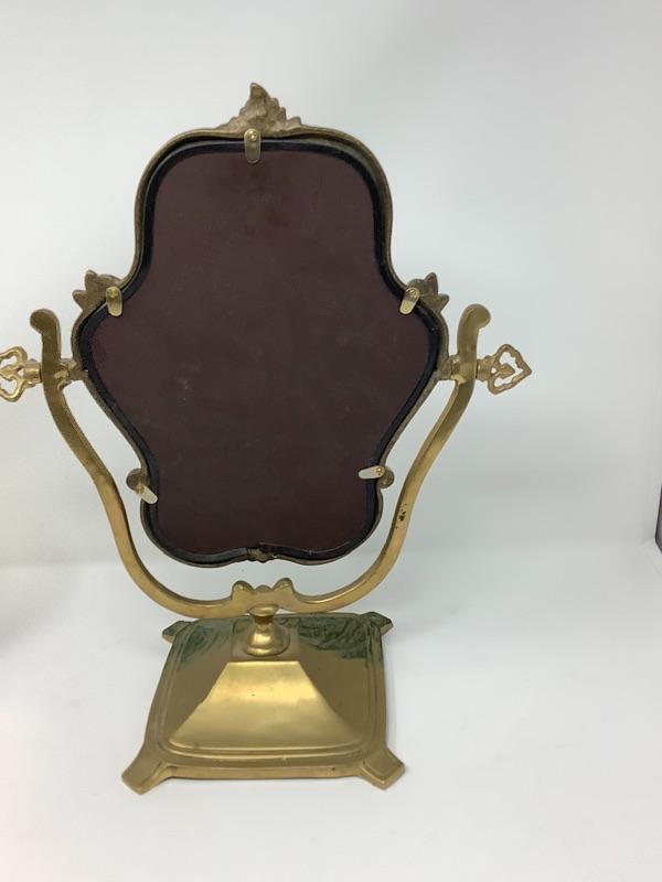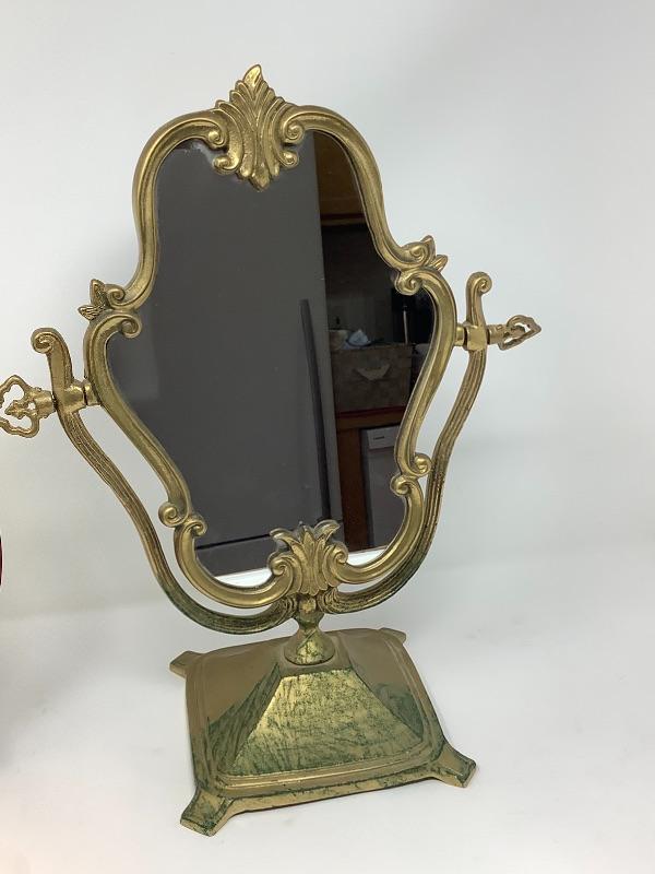 029:  Vanity Mirror,  Clar-est Vase, Glass Plate on Plate Stand