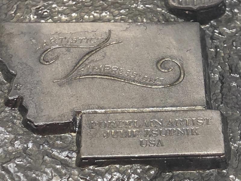 3 inches inches total. Artistic Impressions reads on the back by artist Julie Zsupnik