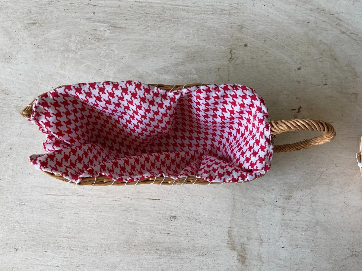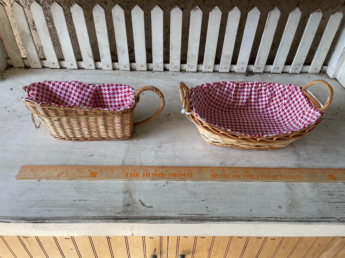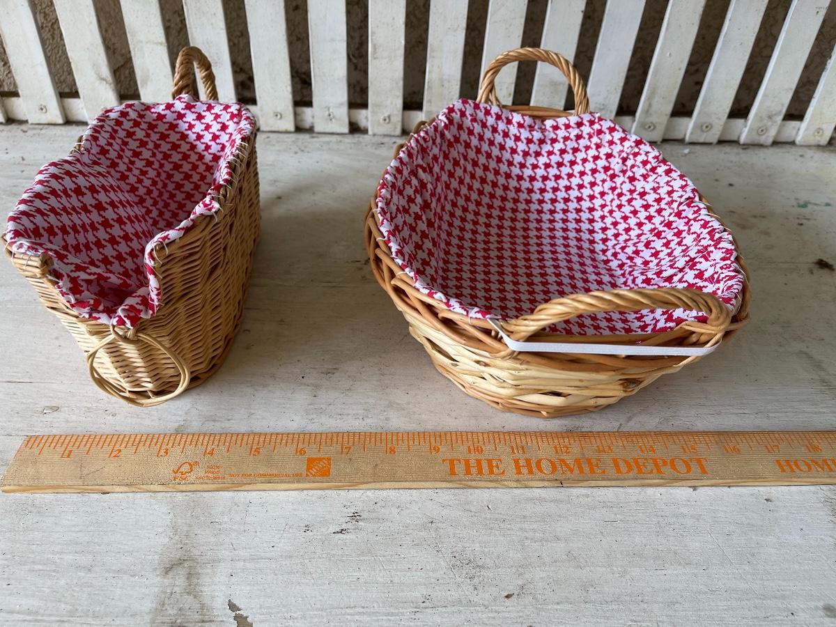 Pair of Red Gingham Lined Wicker Baskets