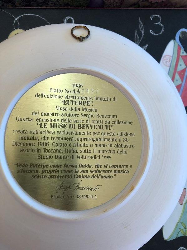 Studio Dante Di Voleradrici collector place of Euterpe. This plate comes with original box and certificate of authenticity.