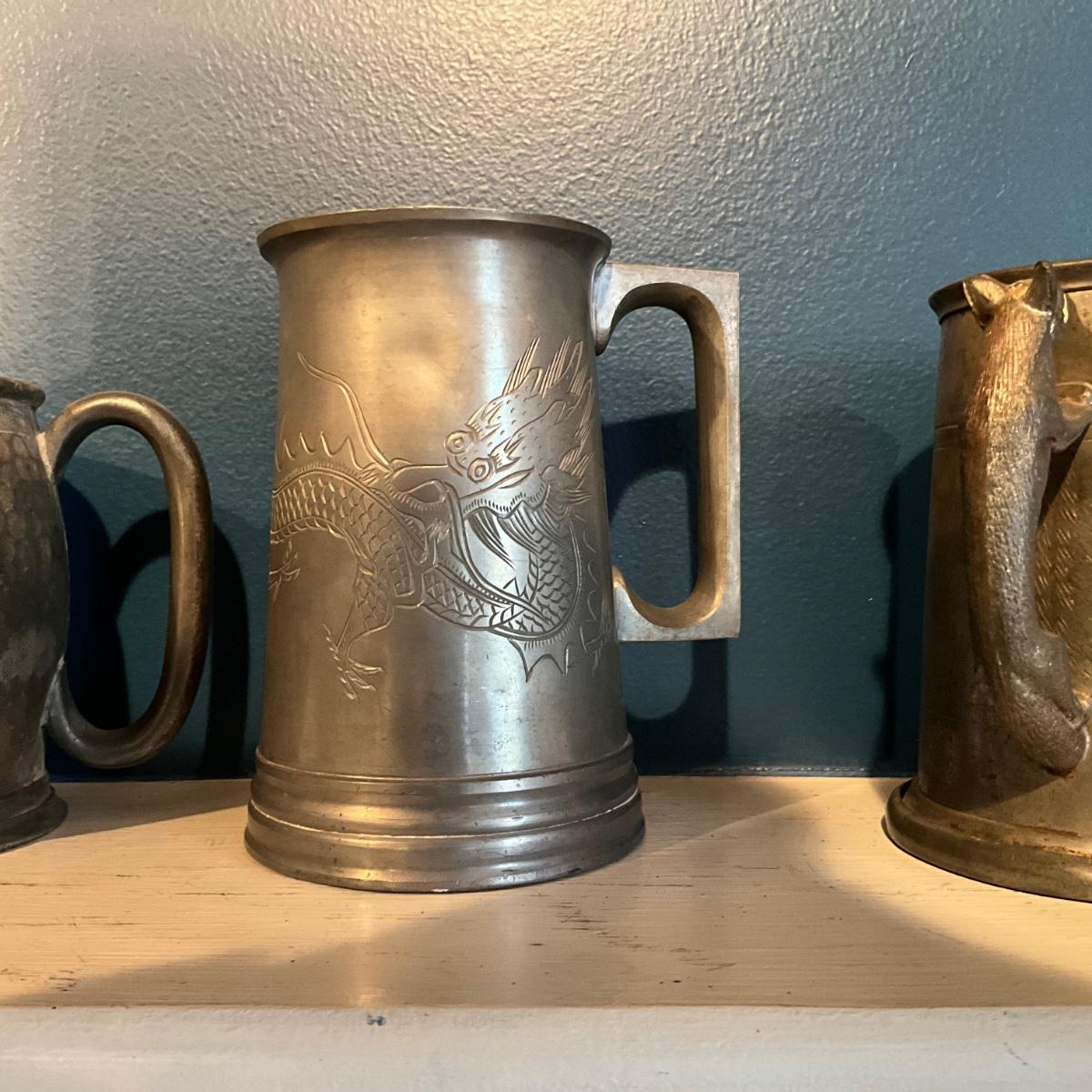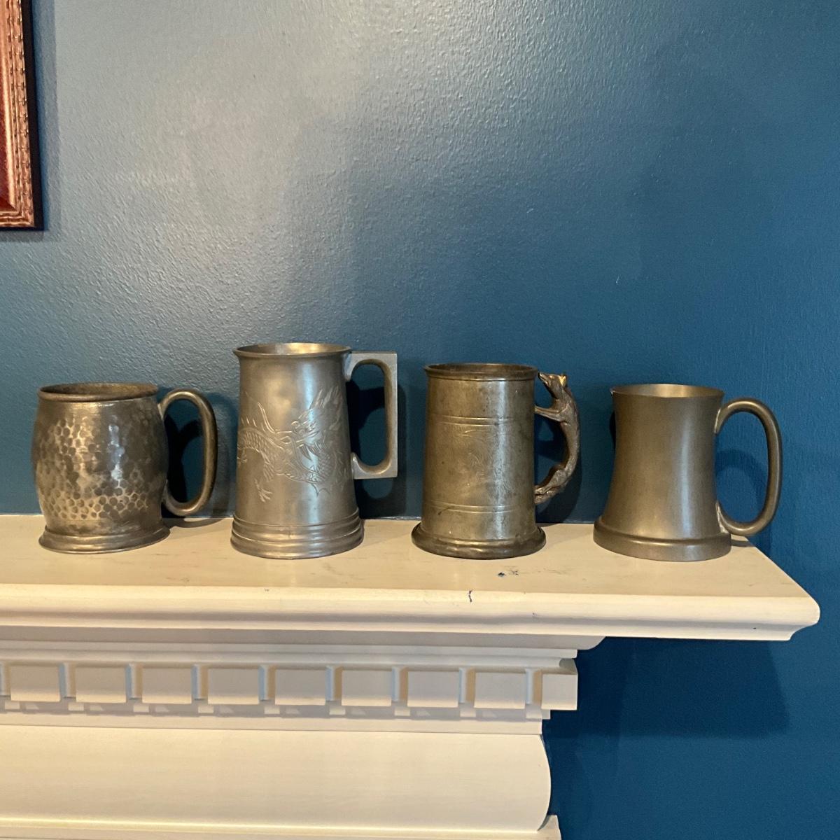 031 Lot of Four Vintage Pewter Mugs / Tankards
