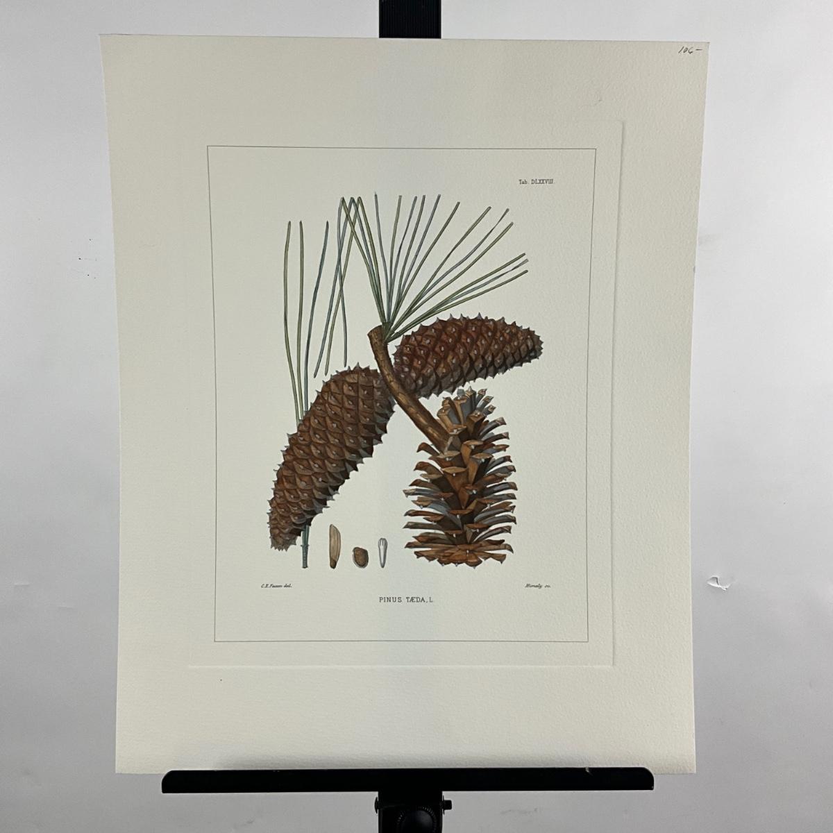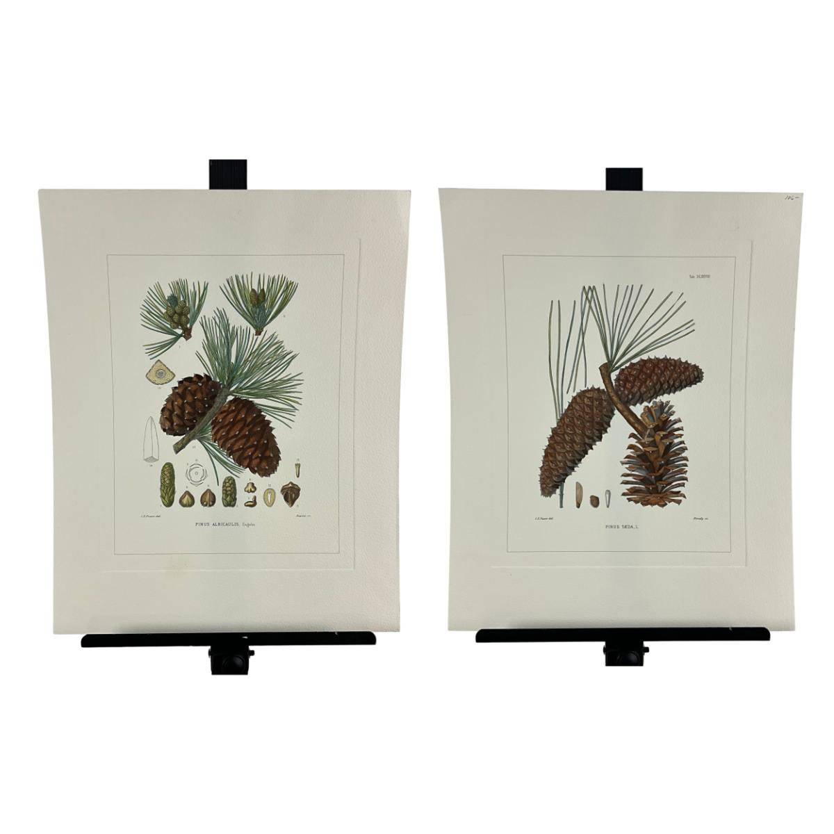 032 Pair of Pine Cone Botanical Illustrations Hand-colored Engravings