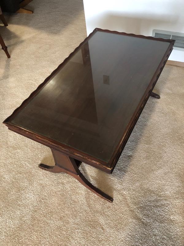 033:  Vintage Coffee Table With Glass Top