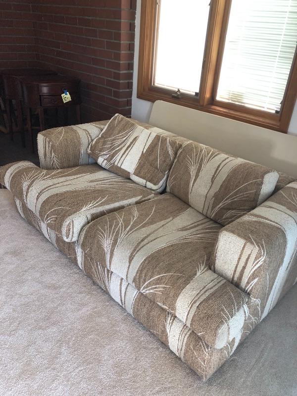 80's style is back in. Super comfy. 64 W x 38 D x 22 H