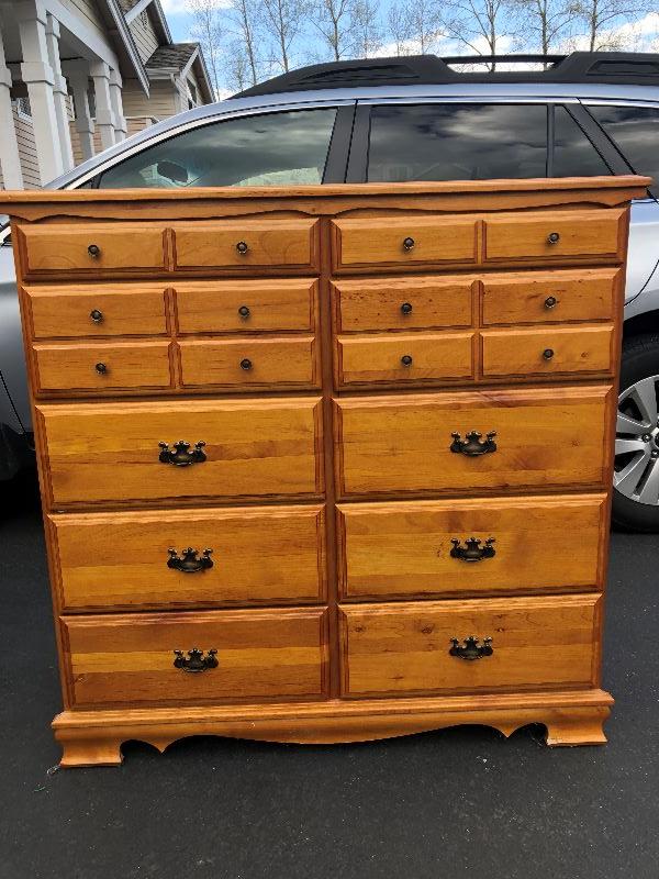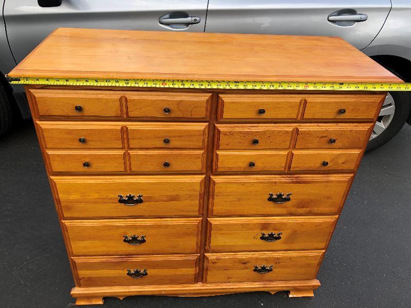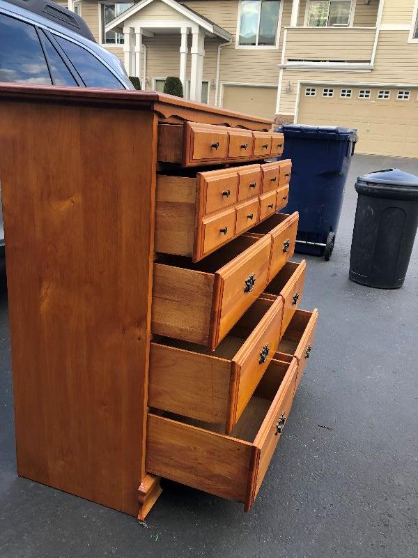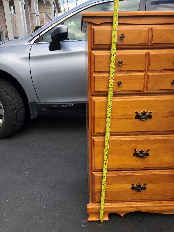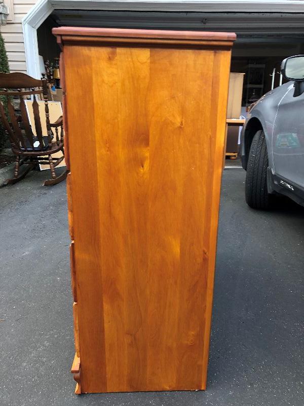 Tall bedroom dresser with 5 drawers solid wood. Measurements shown in pictures.. .