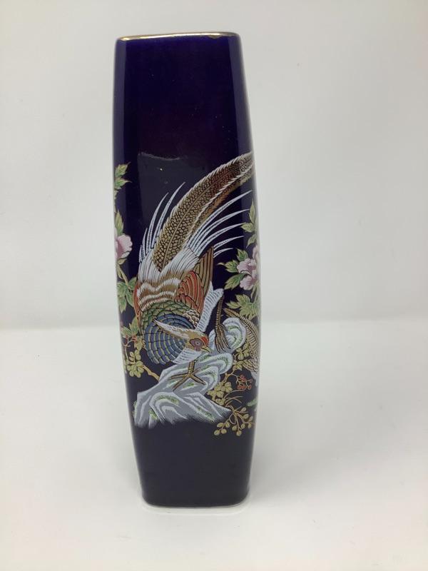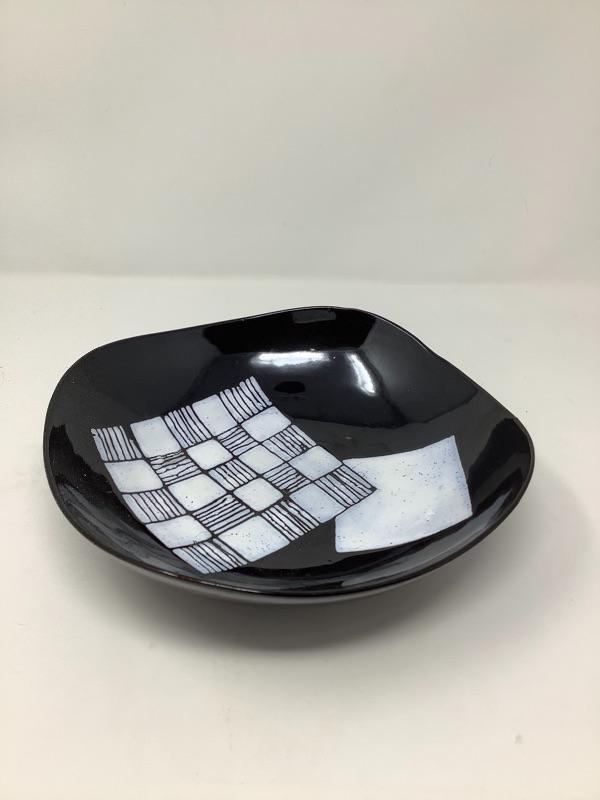 041:  Black Japanese Hand Crafted Stoneware, Abalone shell box, Vase and Tin