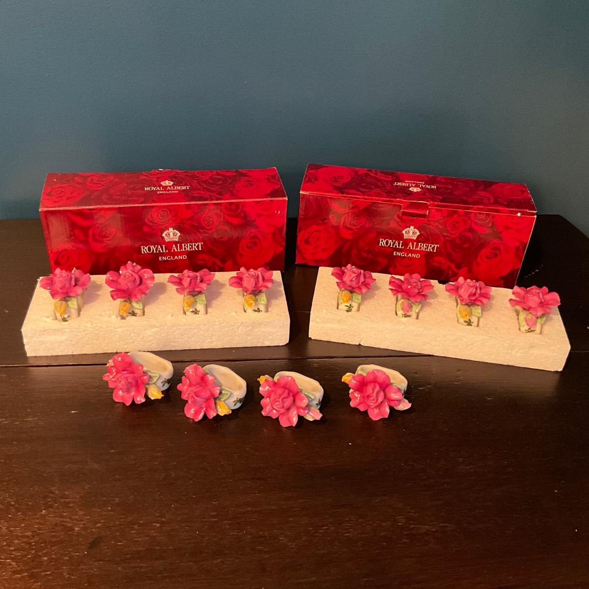 042 Three Sets of Royal Albert Country Roses Porcelain Napkin Rings