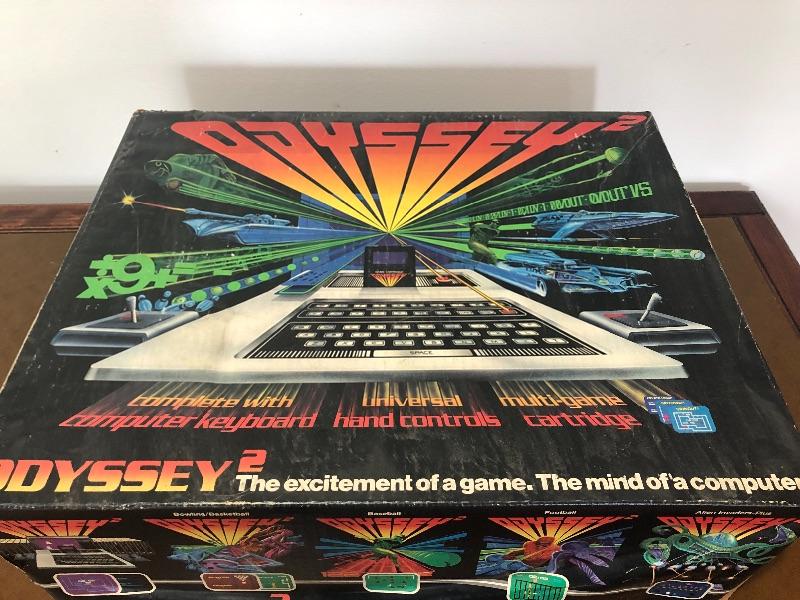 Super cool blast from the past Odyssey 2 Game console with one game and remotes. All parts are present. Box has some wear. Serial number on pictures.