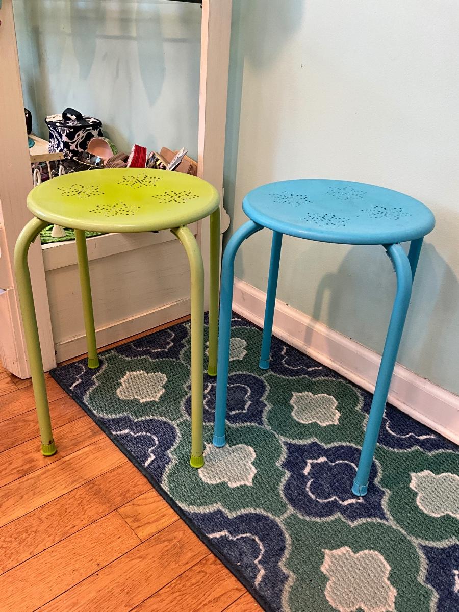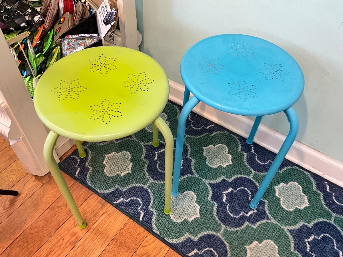 There are 2 stands in this lot, one is blue and one is lime green. They measure 17” x 11.5”.