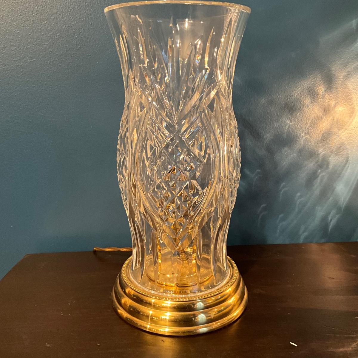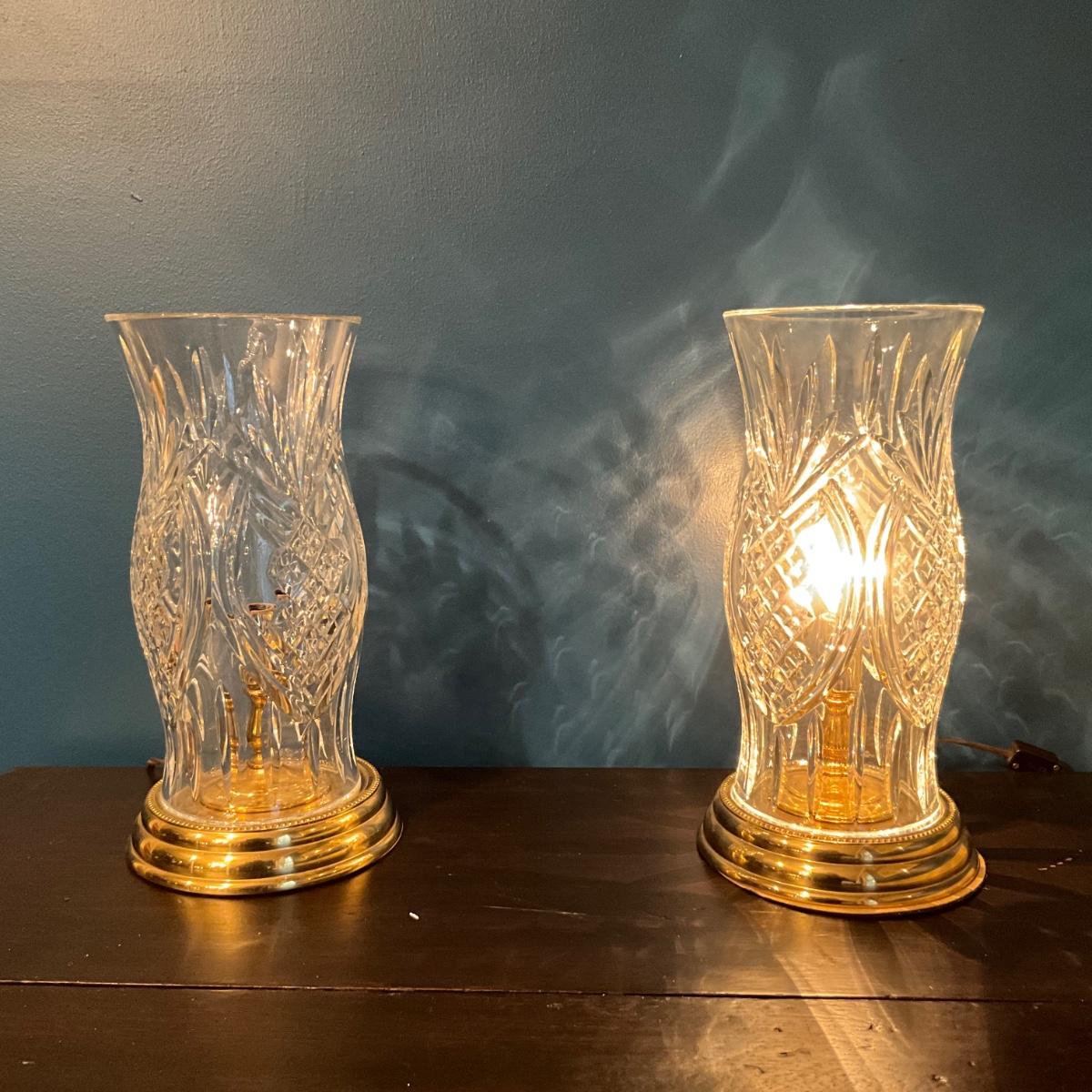 047 Pair of Noritake Hampton Hall Crystal Hurricane Lamps