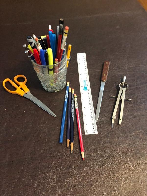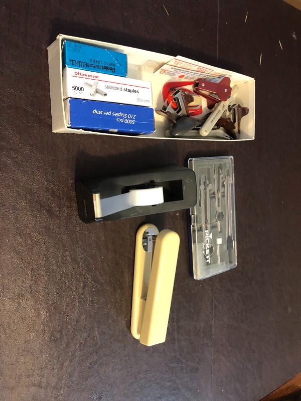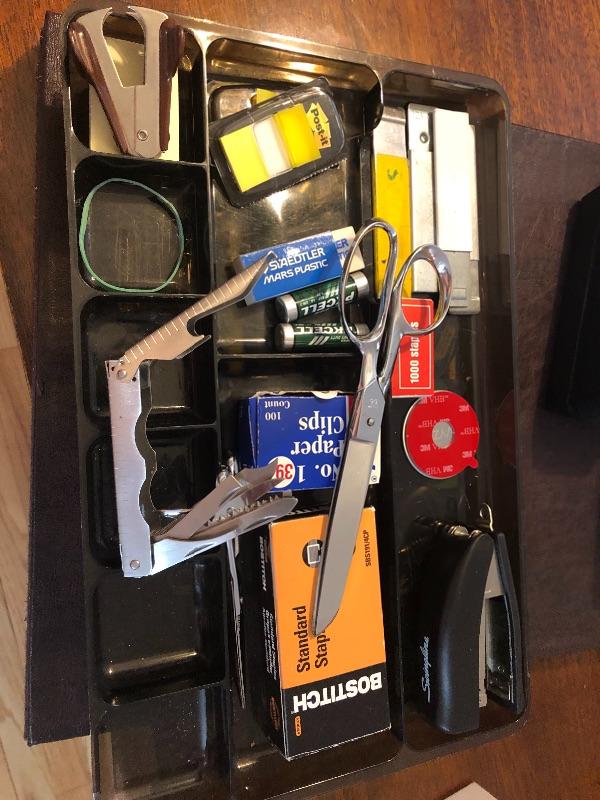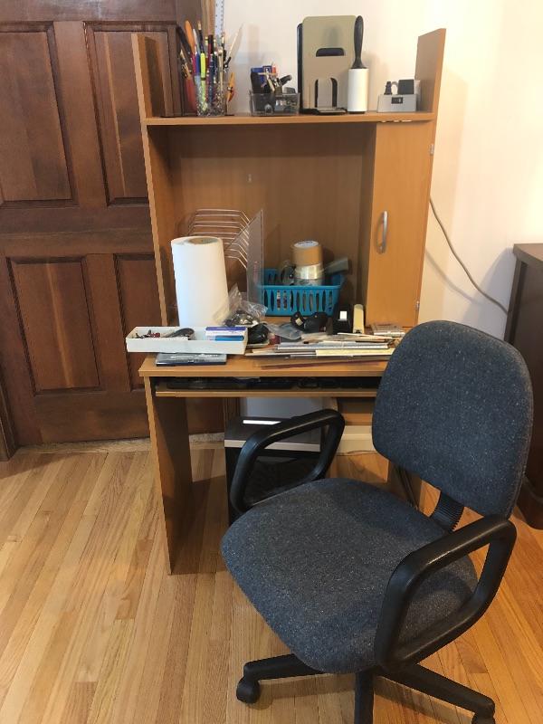 I loaded this desk full of supplies. For you vintage buyers there are some really cool vintage desk items. Check out the pictures. Chair included.