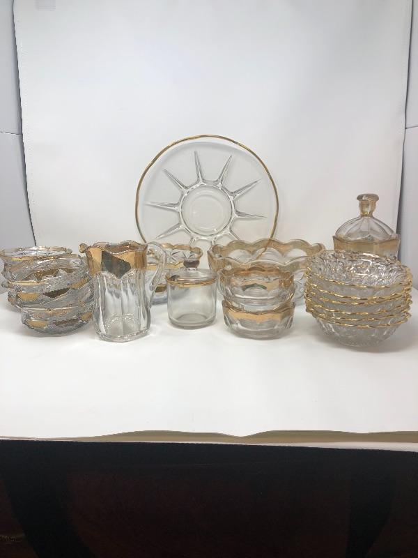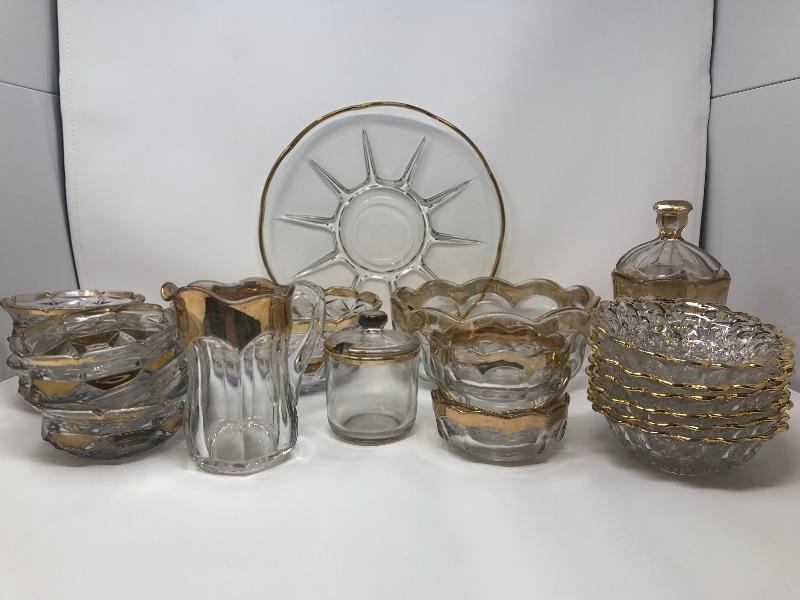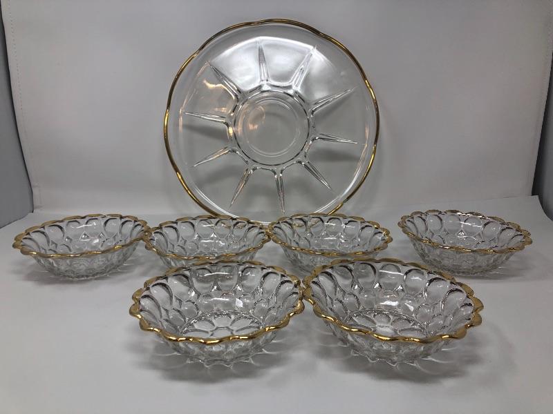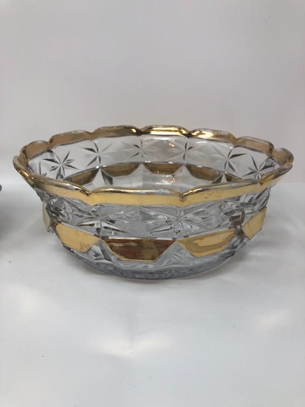052: Vintage Gold Accented Crystal Entertaining Servers