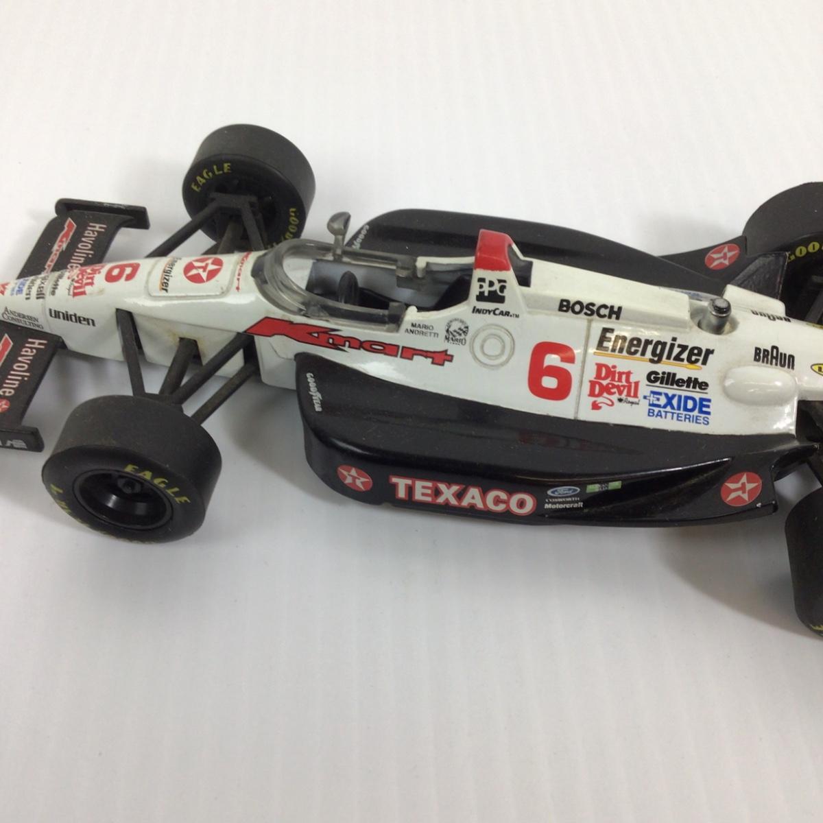 1:24 scale, die cast. Indy car premier edition. There is a missing left mirror.