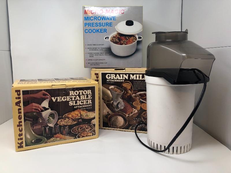 Pressure Cooker, air popper, vegetable slicer, grain mill