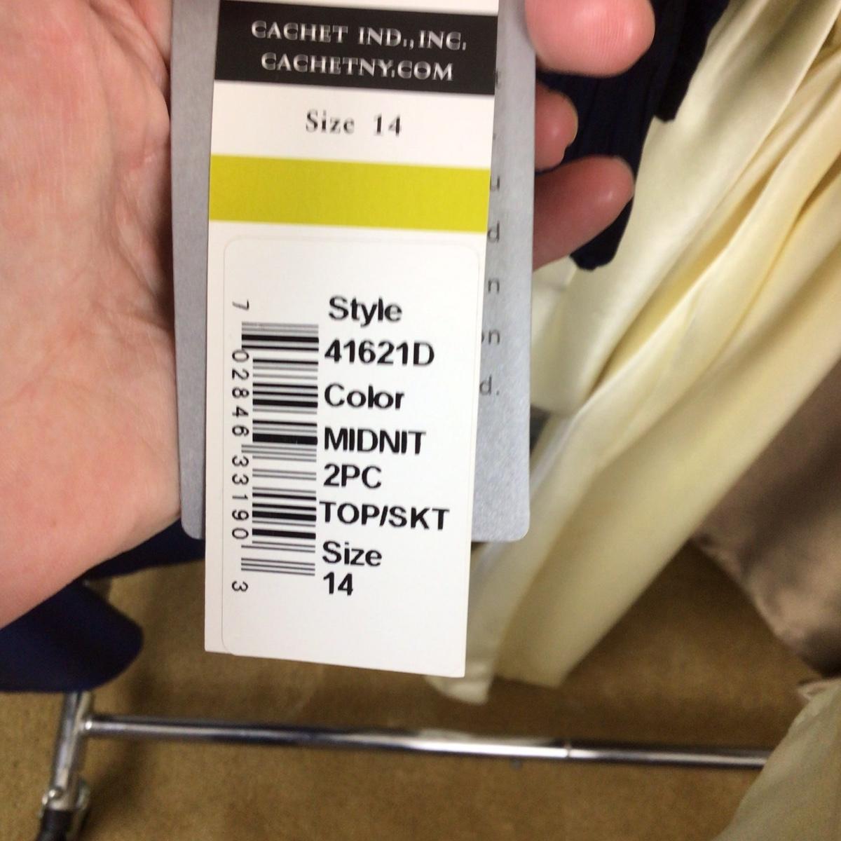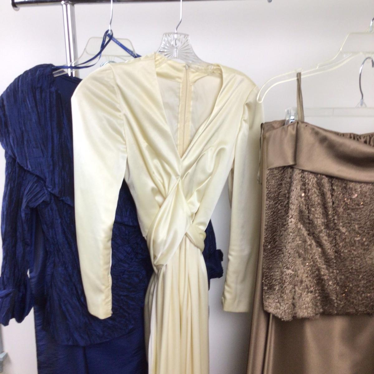 All items are new with tags, Cachet (14) 2 pc top/skirt in midnight taffeta, Ivory OOAK dress (L) and Alex Evening (14) 2 pc top/skirt in bronze.