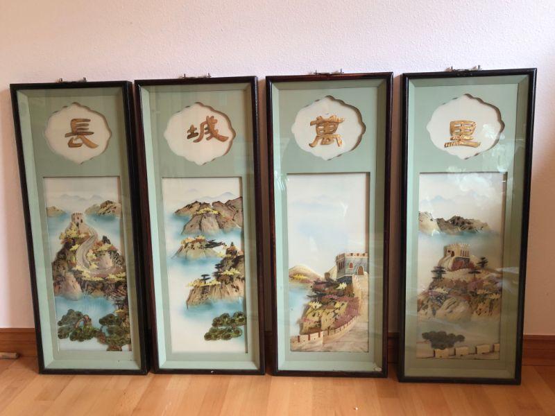 061: Four Panel Mother of Pearl and Shell Carved Screens