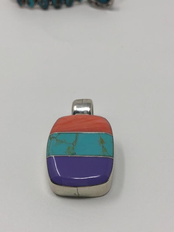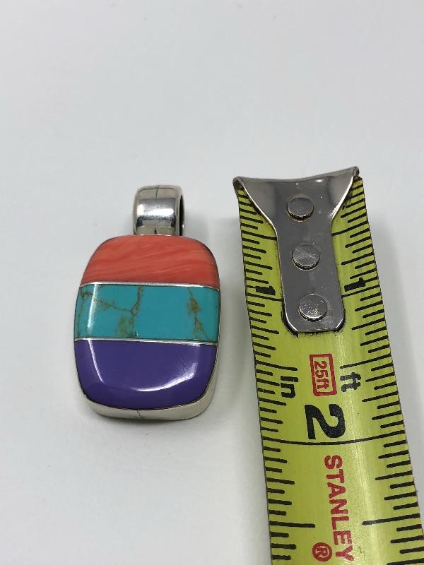 The colorful pendant with orange, turquoise and purple read .925, others do not have markings.