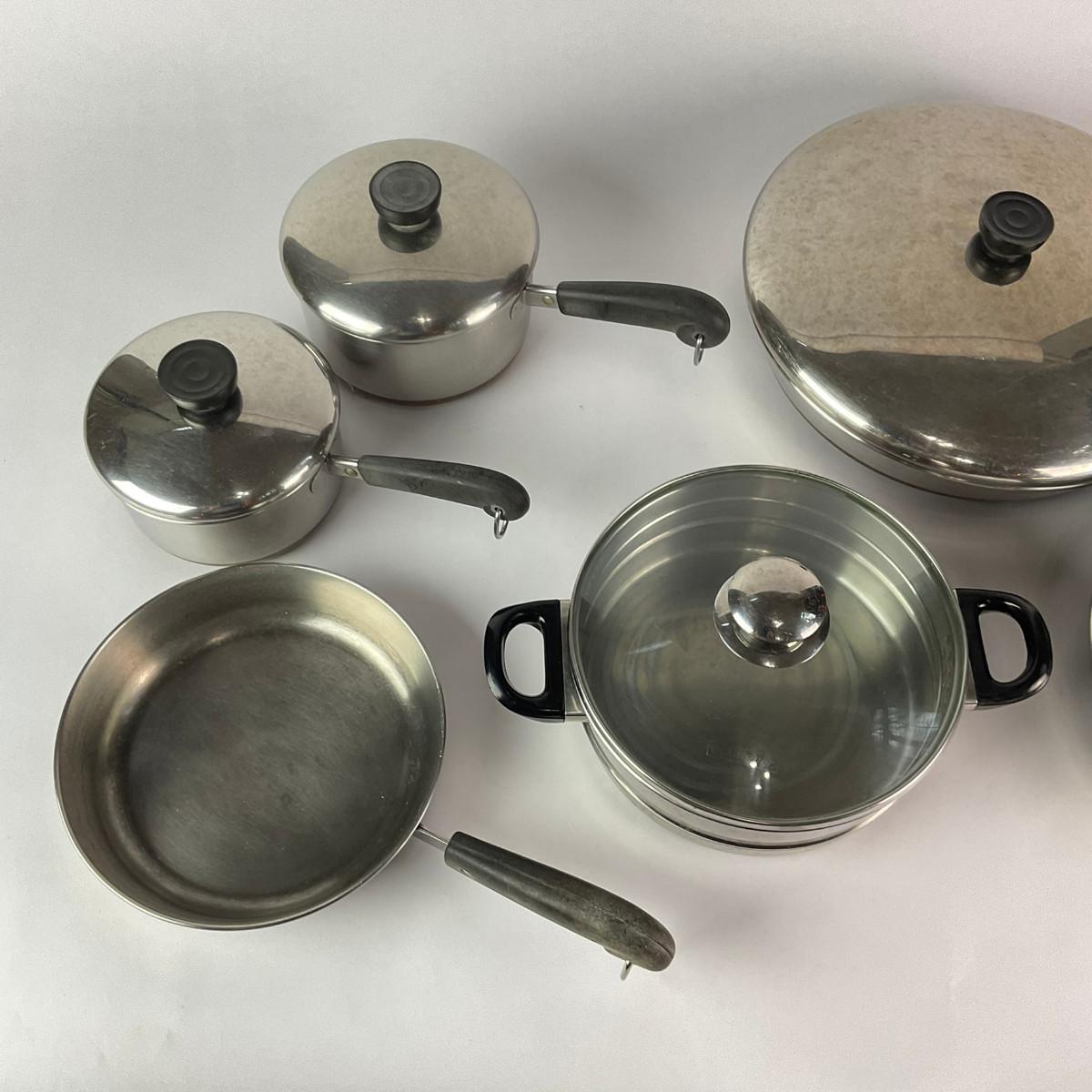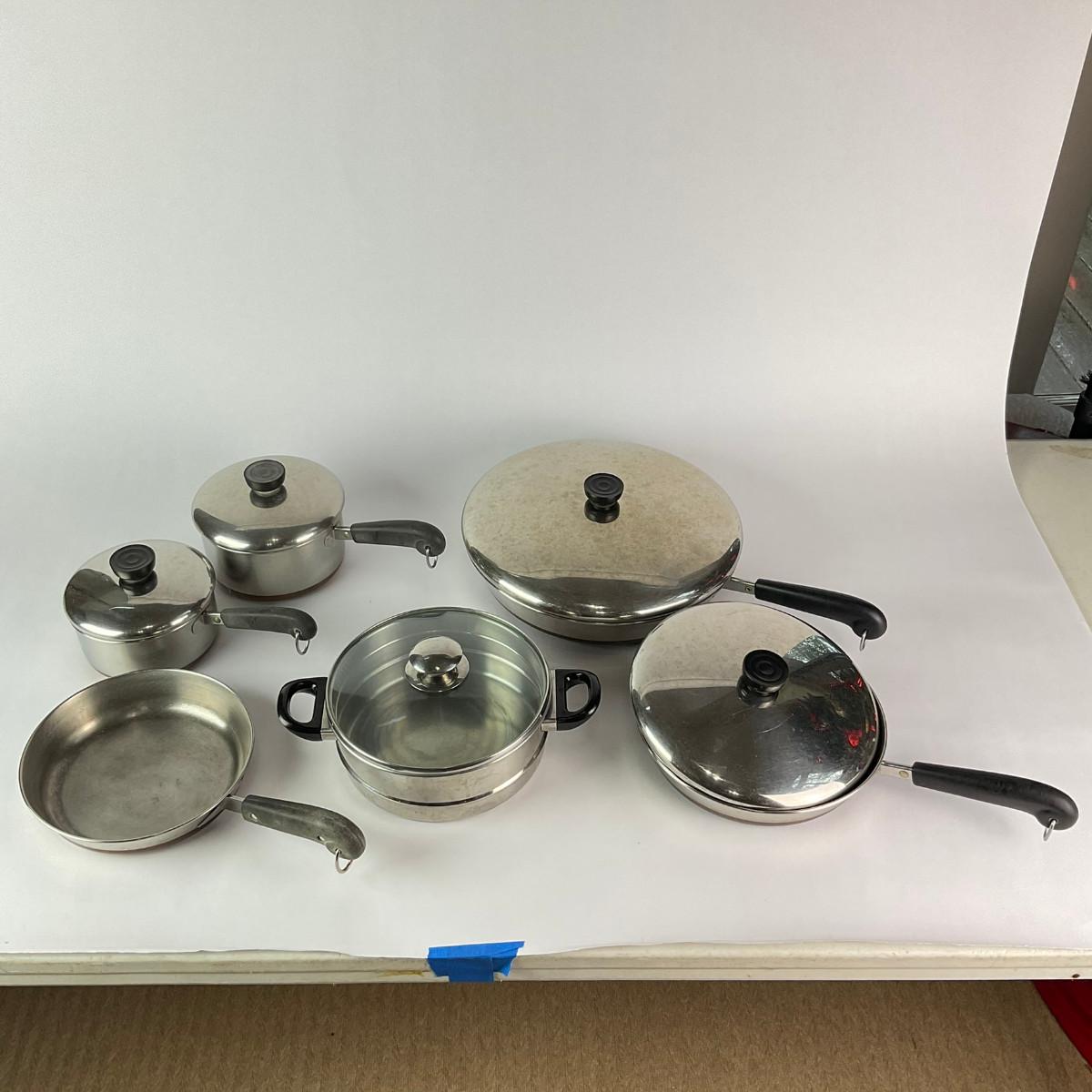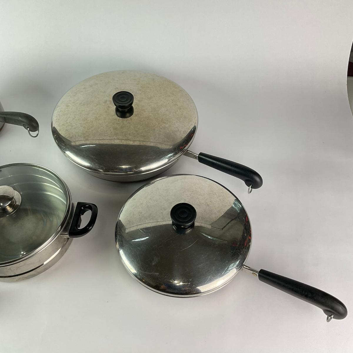 063 Large Lot of Assorted Revereware Cooking Pans & Pots With Matching Lids