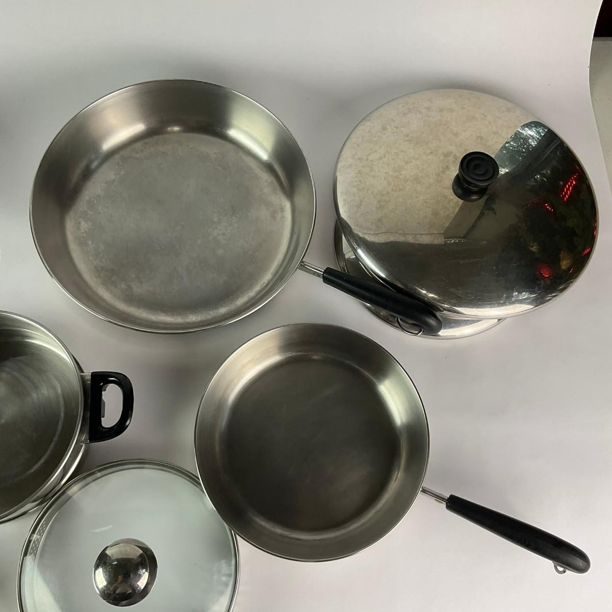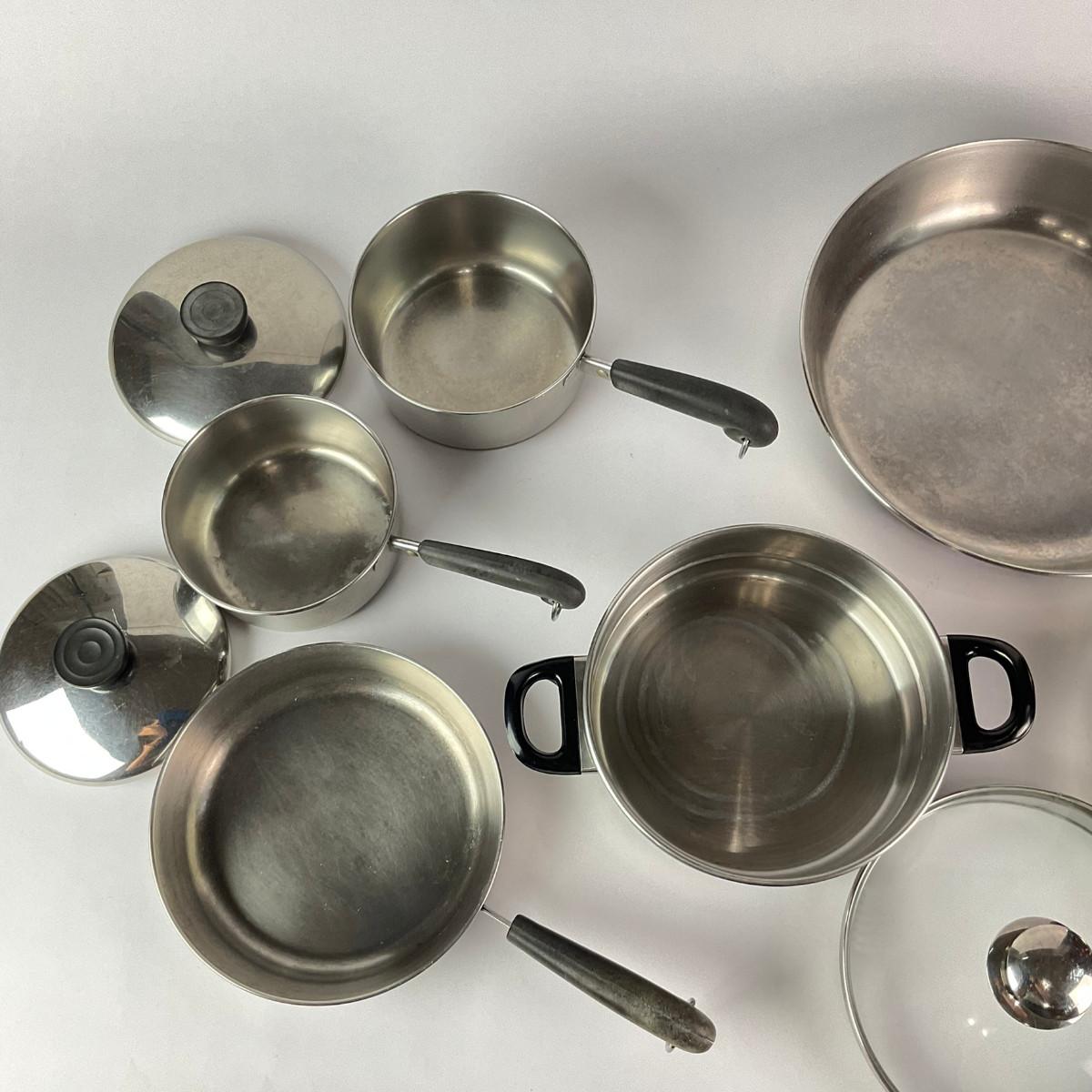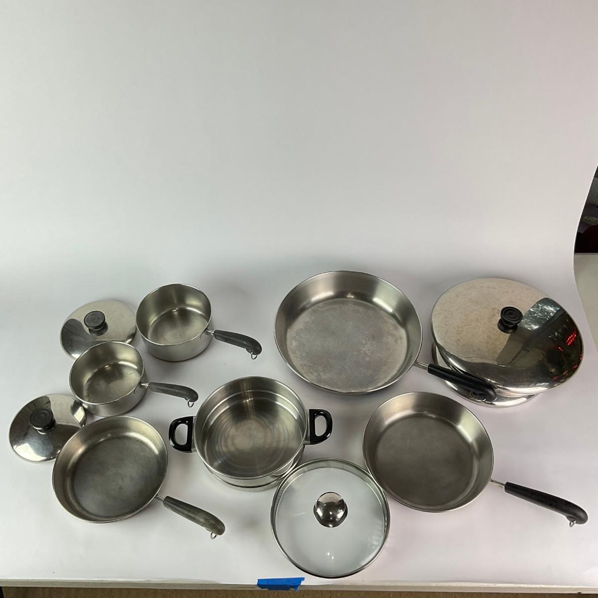 063 Large Lot of Assorted Revereware Cooking Pans & Pots With Matching Lids