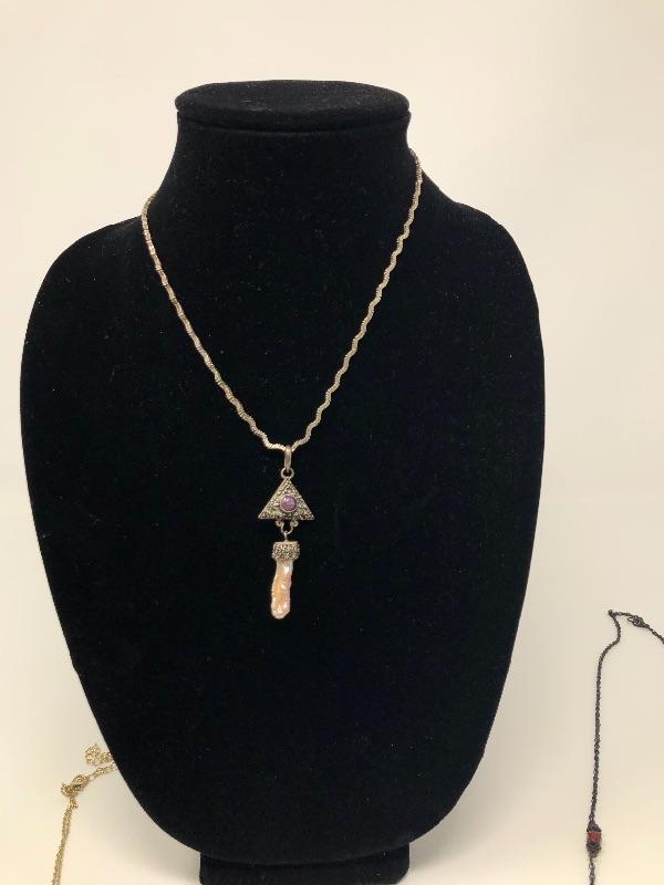 064:  Two Vintage Sterling Necklaces and Other Unique Vintage Pieces