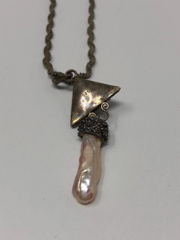 Pearl Drop Pendant Necklace with Sterling Silver Accents.