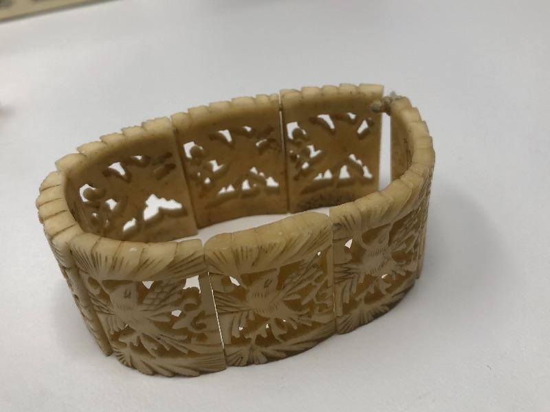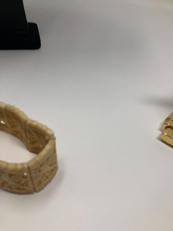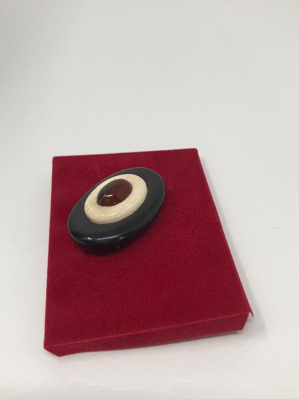 067: Moose Stone Digital Clock, Bakelite Pin and Bracelet.