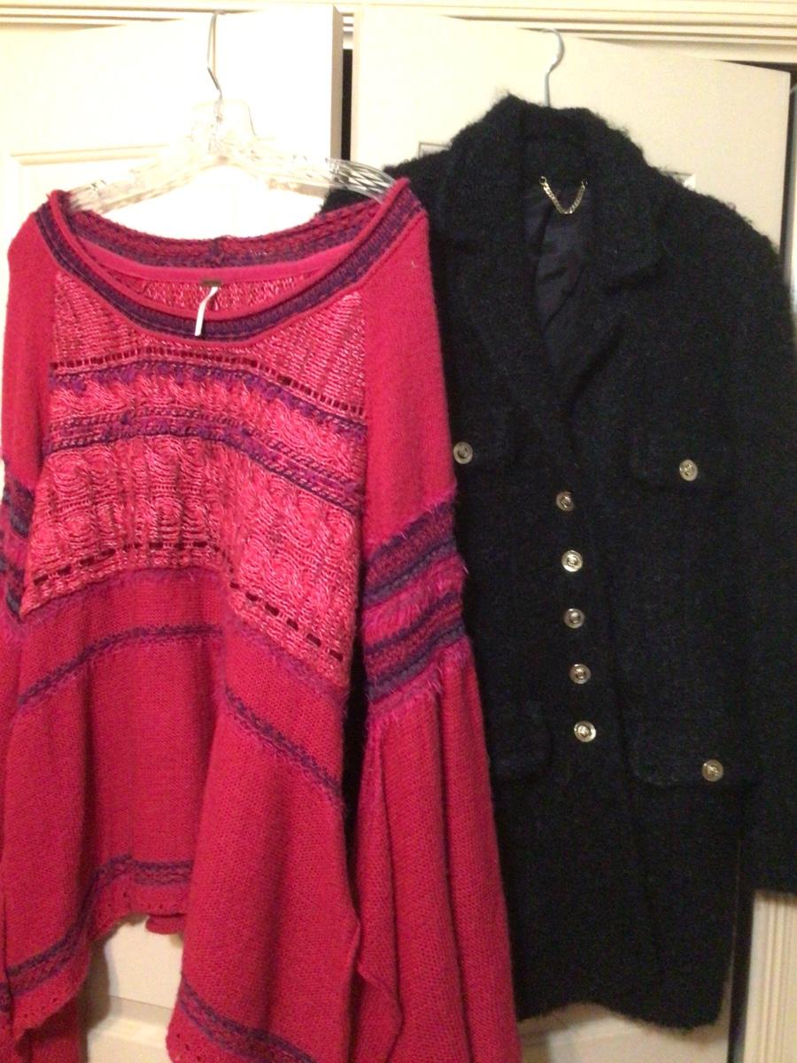 Sweater has bell sleeves, sized medium. Vintage wool blazer is a size medium.