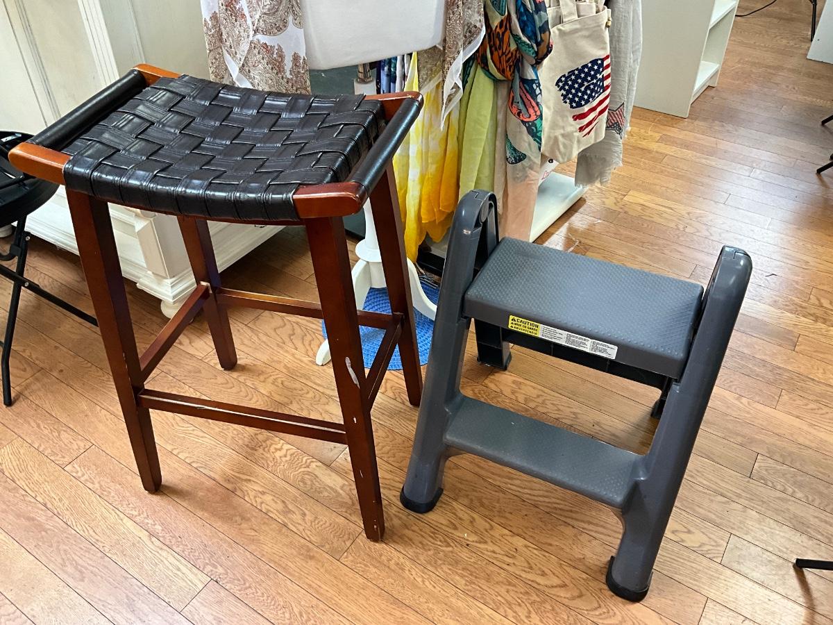 069 Pier One Saddle Stool & Rubbermaid 2 Step Stool