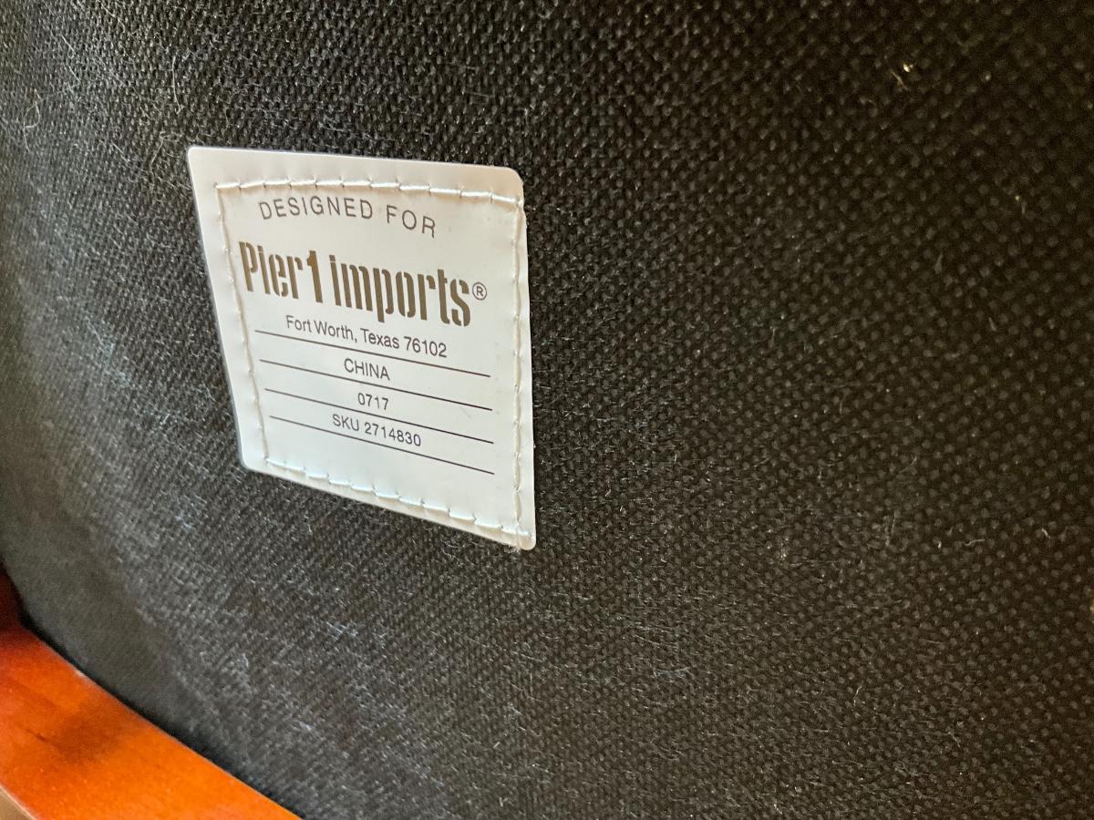 Pier One stool has a woven leather like seat, the Rubbermaid step stool folds flat.
