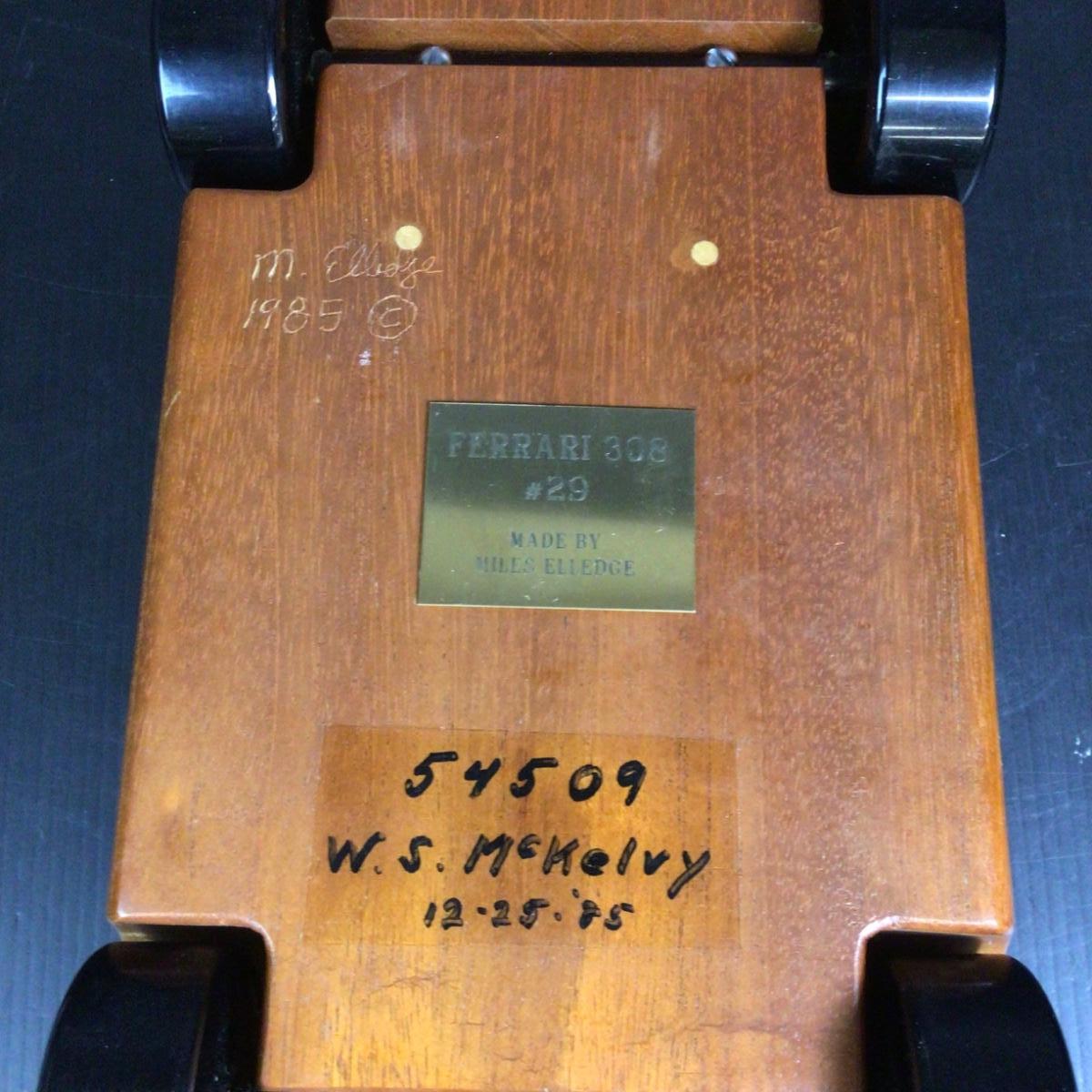 Miles Eledge signed and dated 1985, this is the 29th made with brass plaque engraved Ferrari 308 . It is 15” long x 6.5” wide x 4” high.