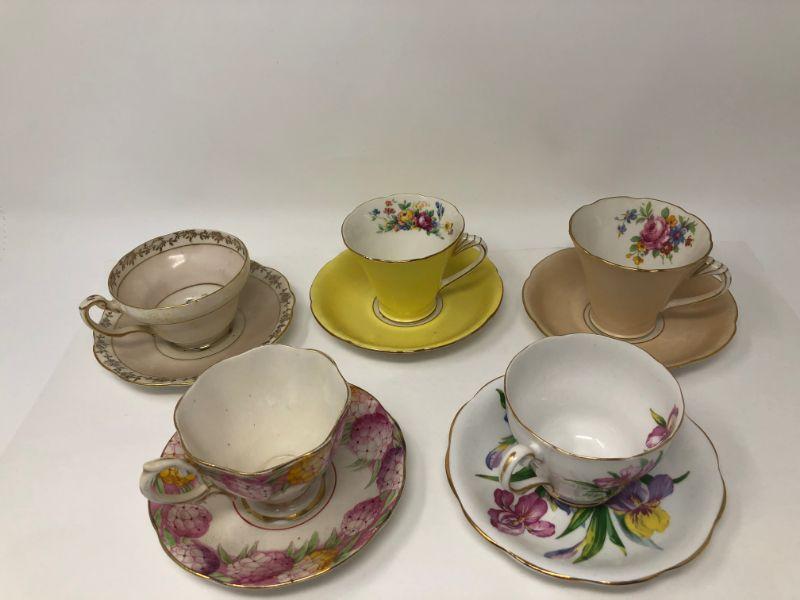 073: Five Assorted Bone China Tea Cups and Saucers