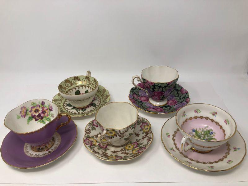 074:  Five Assorted Bone China Tea Cups and Saucers