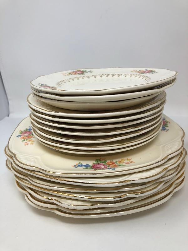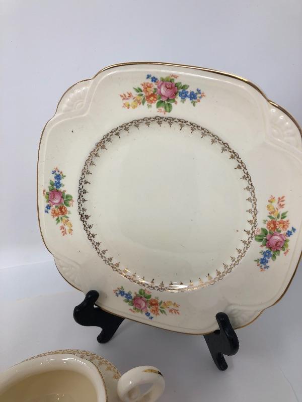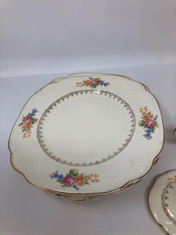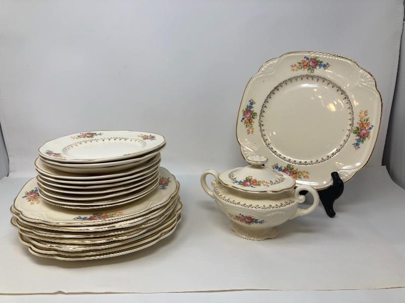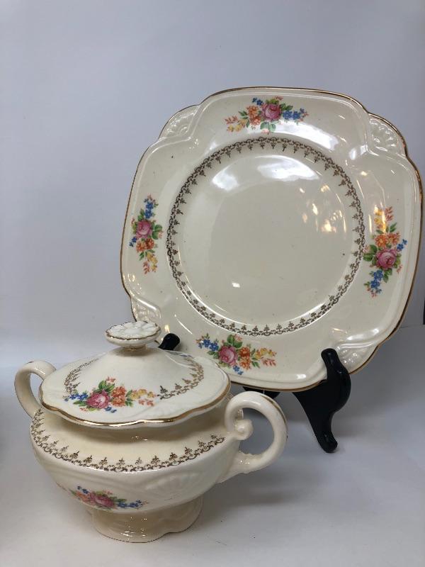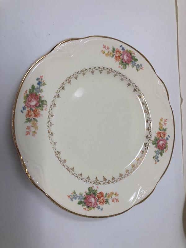 8.5 Inch plates and 6.5 inch plates, sugar bowl 3.5 inches tall
