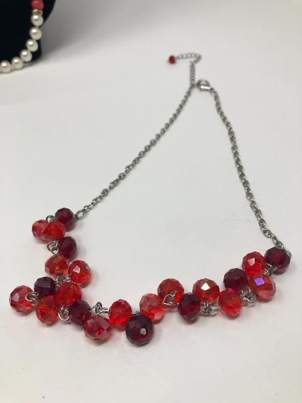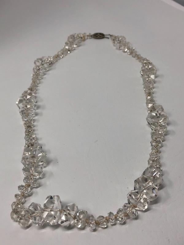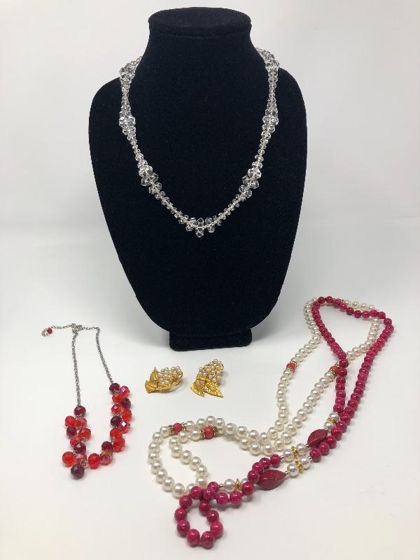 Crystal Vintage Necklace, Faux Pearls Strands, Cluster Vintage Earrings.