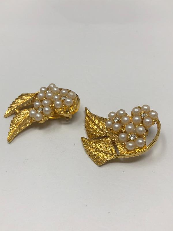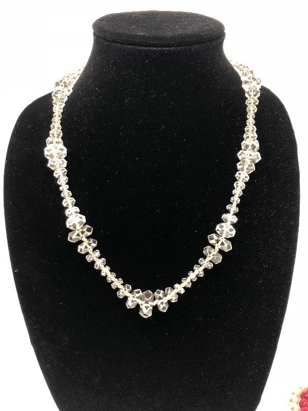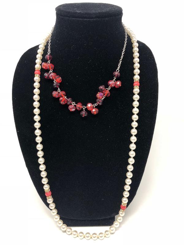 076:  Crystal Vintage Necklace, Faux Pearls Strands, Cluster Vintage Earrings